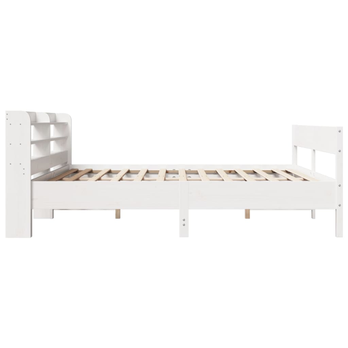 Get a better restful night's sleep from this bed frame! It makes a welcoming addition to any bedroom. Stable and long-lasting frame: Solid pinewood is known for its strength and durability. Its straight grains and distinctive knots contribute to its rustic charm.Slatted base for optimal support: The bed frame is equipped with a slatted base for support and breathability for your mattress.Versatile headboard: This bed frame comes with a headboard that provides excellent back support when you sit up in bed to read or watch TV, while also serving as a decorative element.Ample storage space: This sleek headboard features three convenient shelves, offering ample storage space to keep all your nighttime essentials within easy reach. Good to know:A mattress is not included with this bed. We do offer a various selection of mattresses. You can check our shop for a matching mattress.