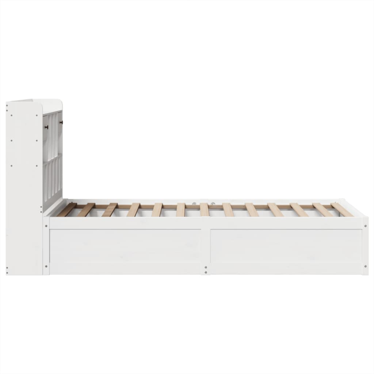 Enjoy a good night's sleep in this wooden bed frame! It makes a practical and decorative addition to your interior. Solid pine wood: Solid pine wood is a beautiful natural material. Pine wood has a straight grain, and the knots give the material its signature, rustic look.Sturdy bed frame: The wooden frame ensures sturdiness and stability. The plywood slats provide good weight distribution, ensuring that the mattress stays in place with every twist and turn of your body during sleep.Functional headboard: The headboard of the wooden bed can keep your mattress in place. Also, the headboard provides you with excellent back support when you sit up in bed to read or watch TV.Ample storage space: This sleek headboard features 3 convenient compartments and 2 drawers, offering ample storage space to keep all your nighttime essentials within easy reach. Good to know:A mattress is not included with this bed. We do offer a various selection of mattresses. You can check our shop for a matching mattress.