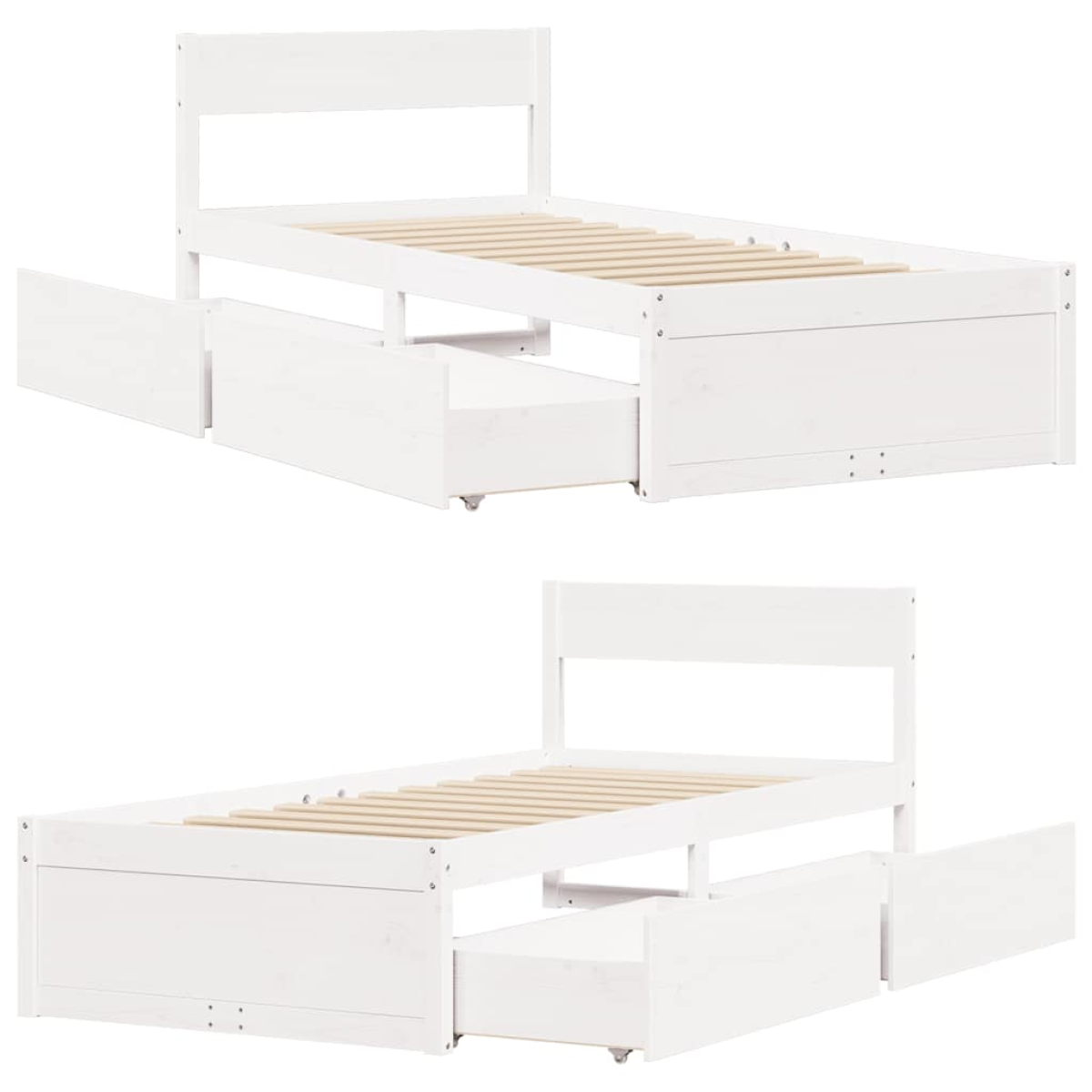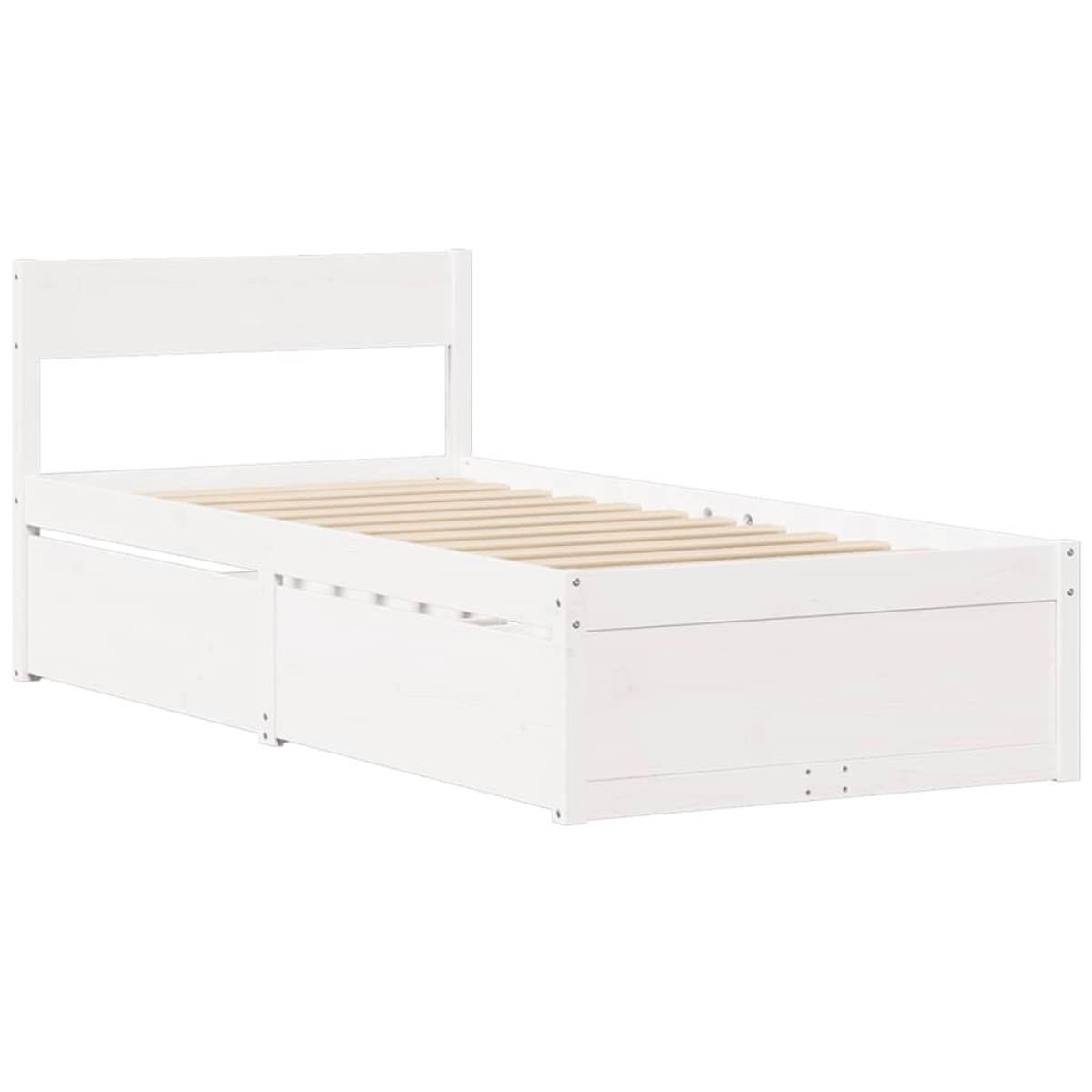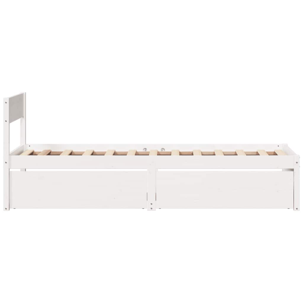 Add a modern touch to your bedroom with this bed frame with drawers! It makes a practical and decorative addition to your living space. Stable and long-lasting frame: Solid pinewood is known for its strength and durability. Its straight grains and distinctive knots contribute to its rustic charm.Plywood slats: The plywood slats provide good weight distribution, ensuring that the mattress stays in place with every twist and turn of your body during sleep.Storage function: The included bed drawers provide ample storage space for storing your essentials, keeping your room clean and tidy.Versatile headboard: This bed frame comes with a headboard that provides excellent back support when you sit up in bed to read or watch TV, while also serving as a decorative element. Good to know:A mattress is not included with this bed. We do offer a various selection of mattresses. You can check our shop for a matching mattress.