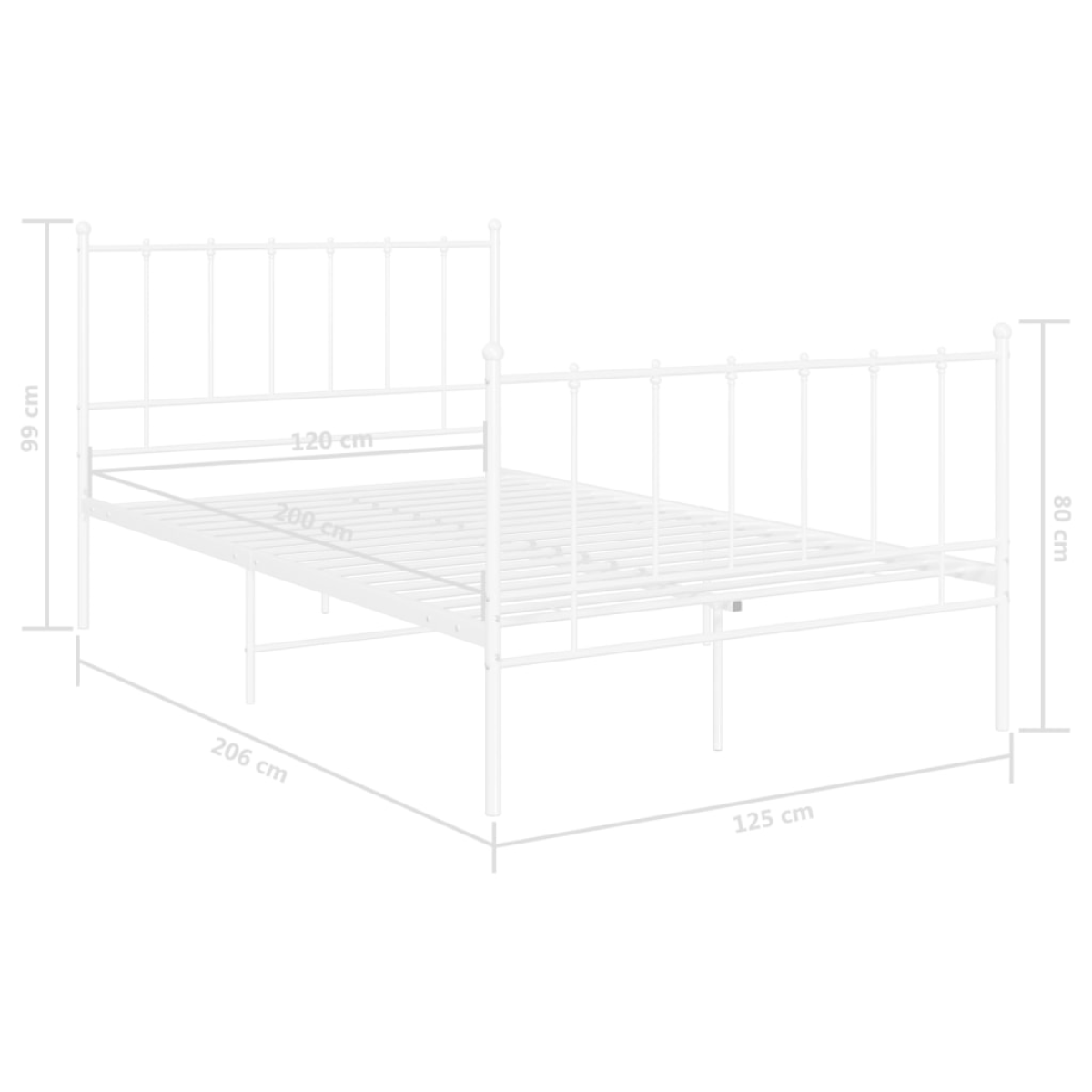 vidaXL Bed Frame without Mattress White Metal 120x200 cm