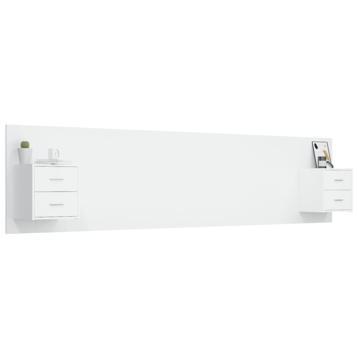 The sturdy bed headboard with cabinets, featuring a classic design, gives your bed frame a complete look and is suitable for any bedroom. Sturdy material: The engineered wood is of exceptional quality with smooth surface and also features strength, stability and resistance to moisture.Wall-mounted design: The floating nightstands and headboard can be wall-mounted. That way, you can maximise your floor space and keep the area clean.Storage space: The bedside unit features spacious storage space which allows you to keep your things organised. WARNING:Screw(s) and plug(s) for inside the wall are not included. Seek and use screw(s) and plug(s) suitable for your walls. If you are uncertain, seek professional advice. Read and follow each step of the instruction carefully.