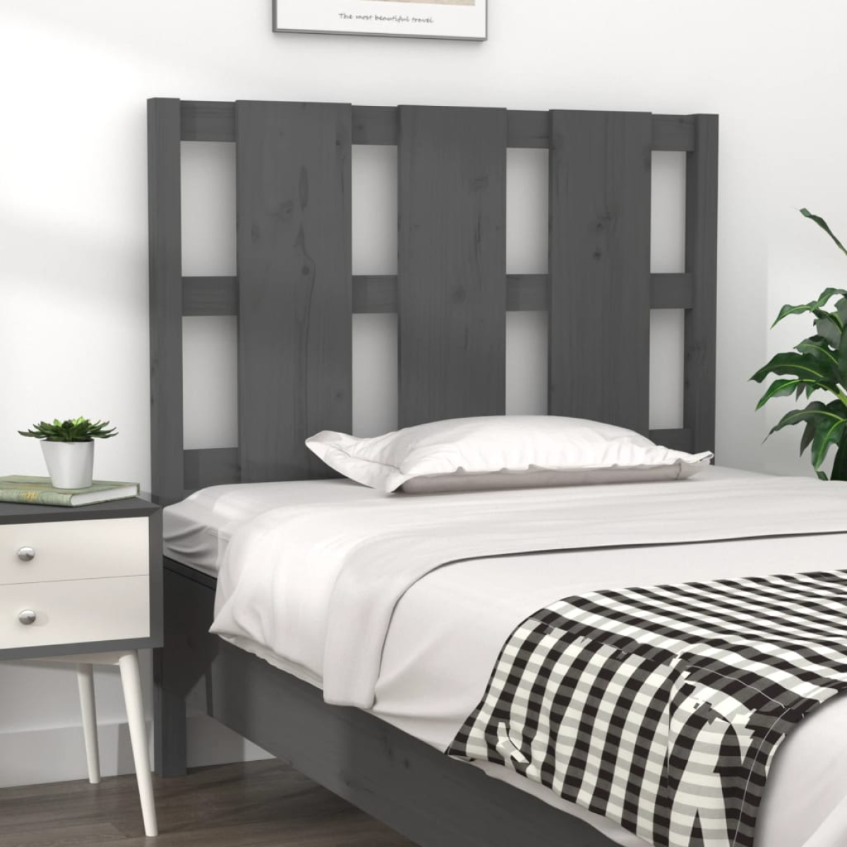 vidaXL Bed Headboard Grey 105.5x4x100 cm Solid Wood Pine