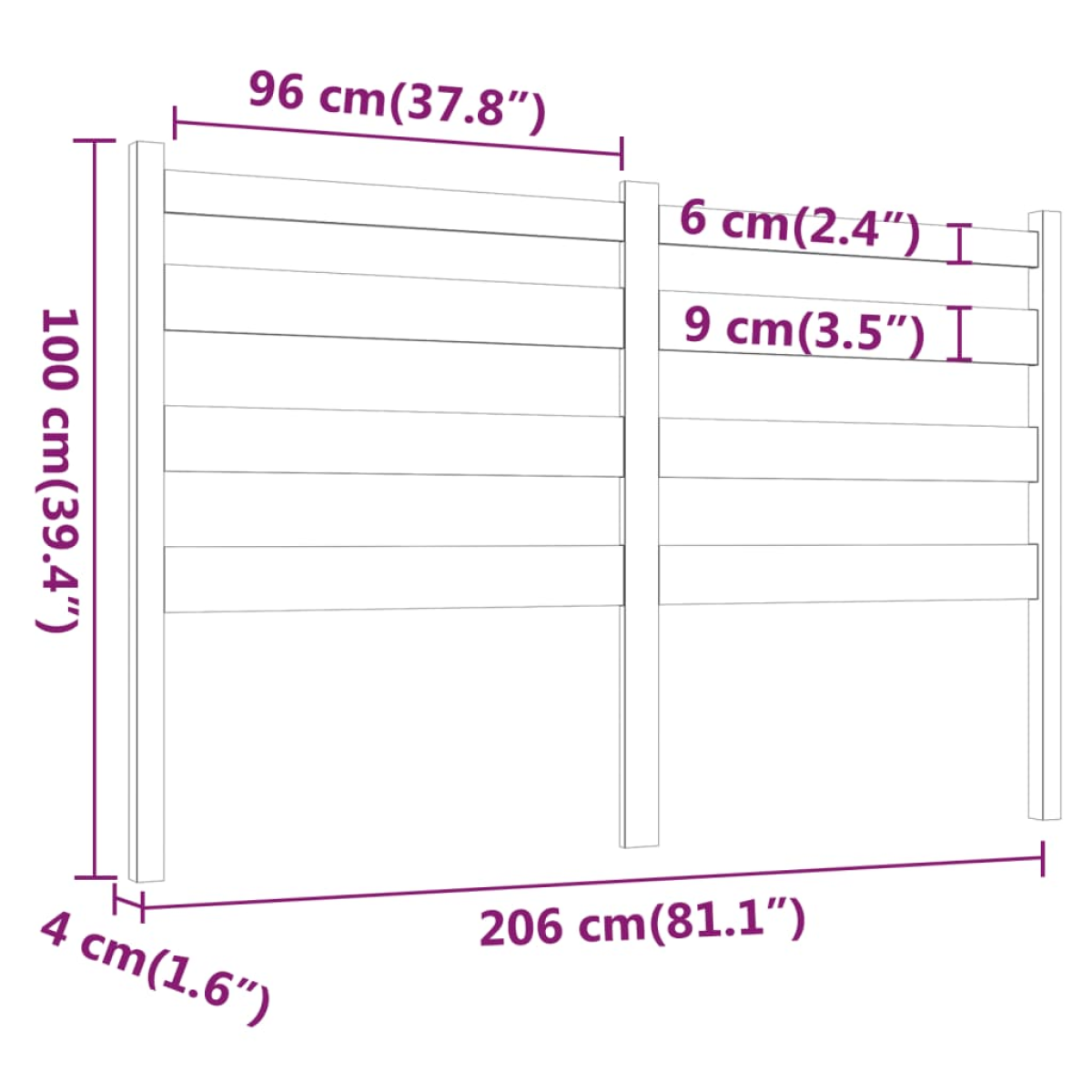 vidaXL Bed Headboard Grey 206x4x100 cm Solid Wood Pine