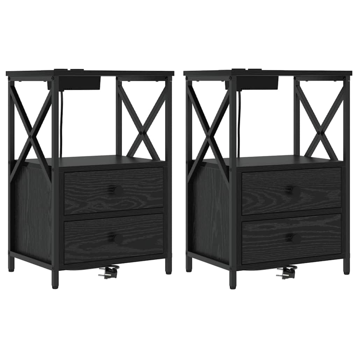 vidaXL Bedside Cabinet with Charging Station 2 pcs Black oak