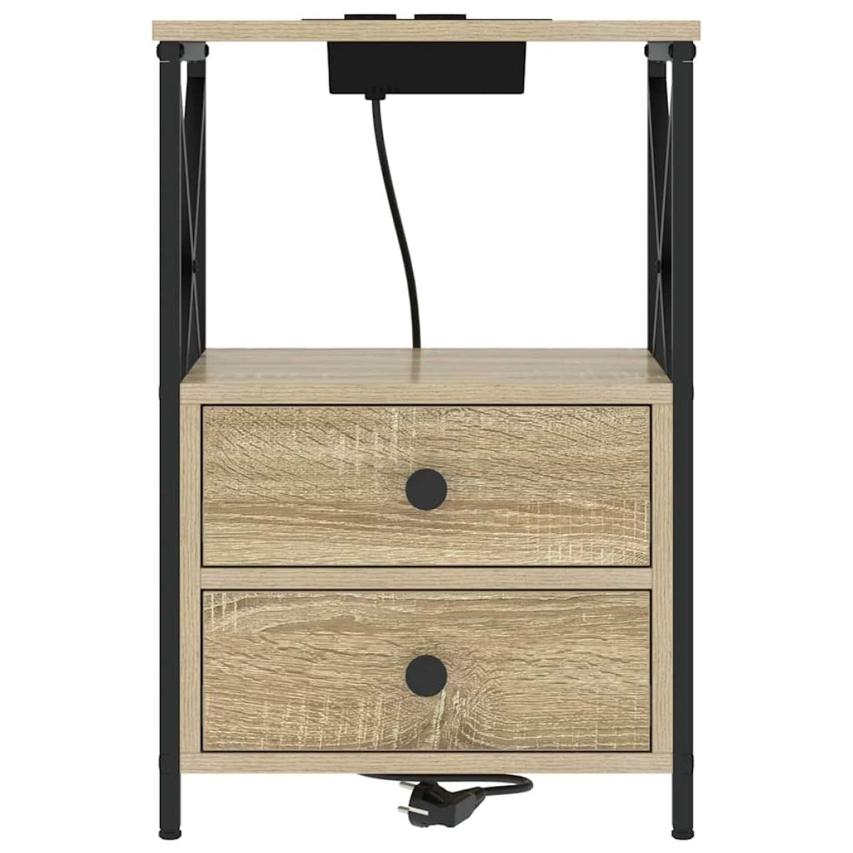vidaXL Bedside Cabinet with Charging Station with Drawer Sonoma oak