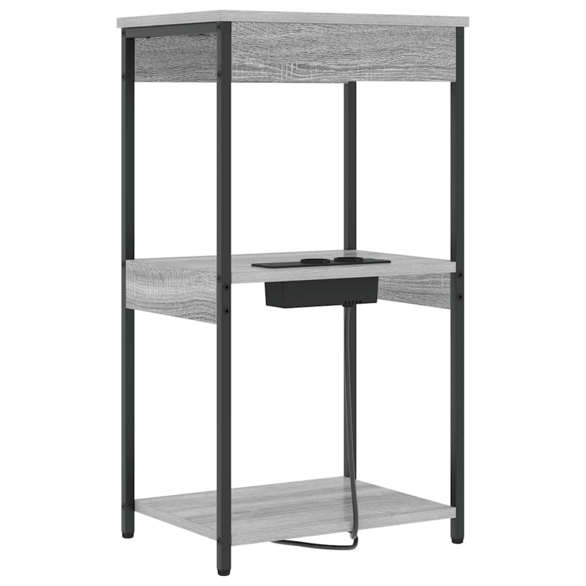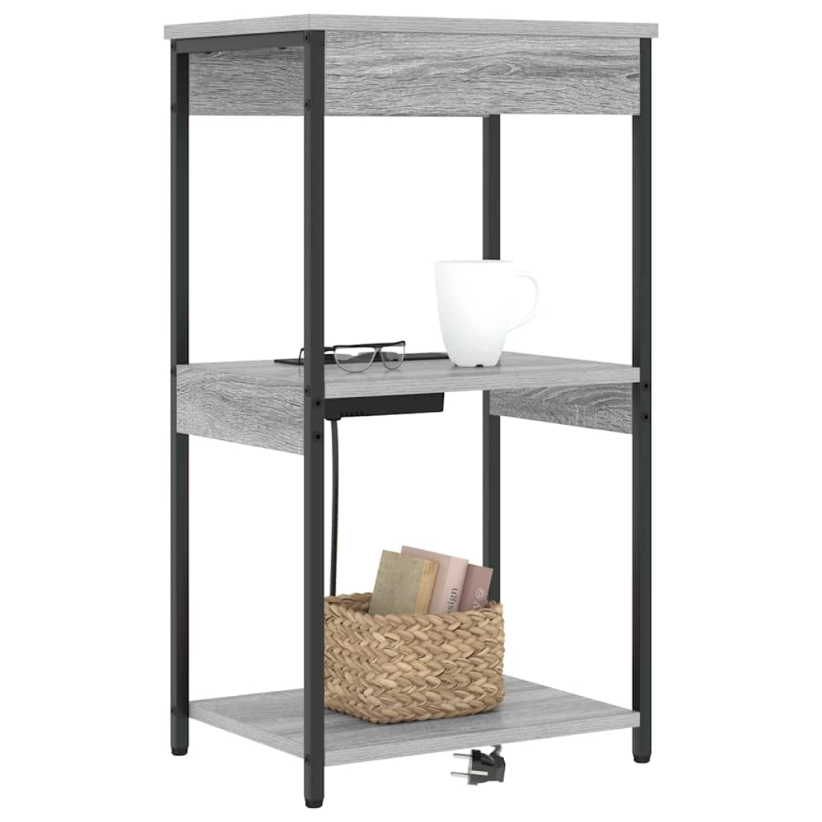 vidaXL Bedside Cabinet with Charging Station with Shelf Grey sonoma