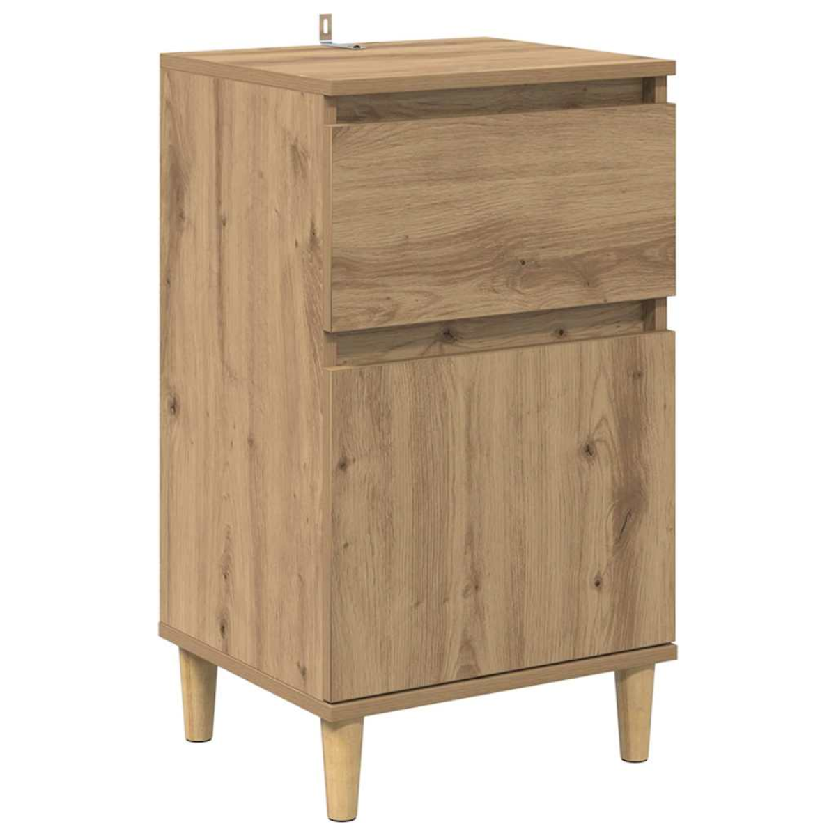 This bedside cabinet table boasts a functional design that exudes rustic charm, bringing a touch of natural elegance to any bedroom setting. With its stylish form combined with practical utility, this piece provides a sophisticated yet homely center for keeping essentials like lamps, alarm clocks, and personal items within easy reach. Its neutral tones blend seamlessly into diverse decor styles, providing a timeless appeal for users looking to enhance their bedroom setups. Engineered Wood Structure This cabinet is constructed entirely from engineered wood, offering a robust structure that stands up to daily use. Its sturdy design ensures a stable surface for lamps and essentials while maintaining a consistent finish that resists wear and tear. Engineered wood is also favored for its qualities, contributing to furniture solutions. Functional Storage Space Featuring a traditional drawer with a handle for effortless access, this bedside cabinet makes organizing personal items simple and convenient. The drawer offers adequate space for storing nighttime essentials, while its easy-to-operate design ensures a clutter-free bedroom ambiance, perfect for maintaining both order and relaxation. Charming Tapered Legs The cabinet is supported by tapered legs crafted from engineered wood, lending an airy touch to its robust frame. These legs are designed to taper gradually, bringing a sleek aesthetic that complements its rustic style. Tapered legs also provide stability, offering a reliable foundation for this bedside essential. Versatile Bedroom Use Designed primarily for bedroom arrangements, this cabinet delivers versatility through its simple, timeless design. It fits comfortably in personal and guest rooms, making it a solid choice for a range of interior setups, enhancing aesthetics while providing practicality. Assembly Guidelines This piece requires assembly by two people using a screwdriver. Taking care during setup will ensure its longevity and optimal functionality over time, guaranteeing satisfaction in both appearance and utility.