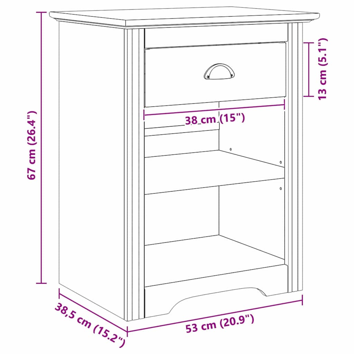 • Overall dimensions: 53 x 38.5 x 67 cm (W x D x H)