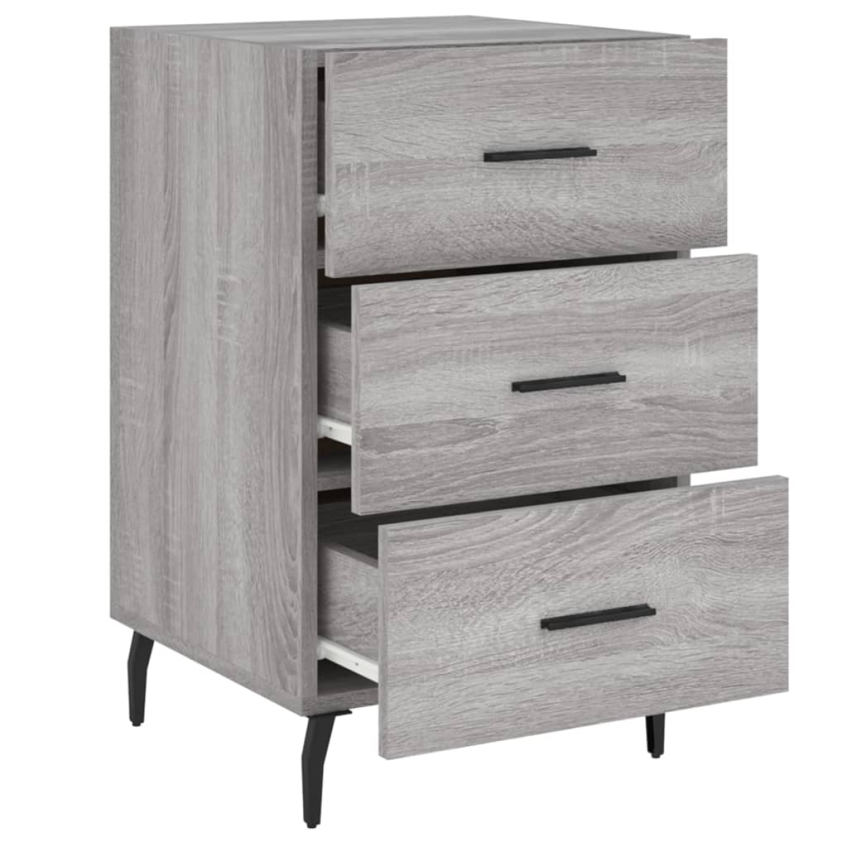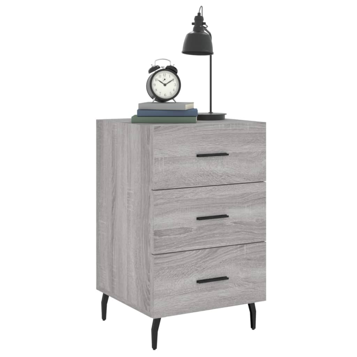 Introduce an air of modern charm to your interior with this bedside cabinet! Durable material: The engineered wood is of exceptional quality with smooth surface and also features strength, stability and resistance to moisture. Spacious storage: The bedside cabinet has drawers, providing spacious storage space to keep your books, multimedia appliances and other items within reach.Displaying function: You can also place your favourite photos, decorations or flowers on top of the side cabinet to enrich your life. Metal feet: The metal feet add a calm style to your interior while ensuring stability. Warning: To prevent it being overturned, this product must be used with the provided wall attachment device.