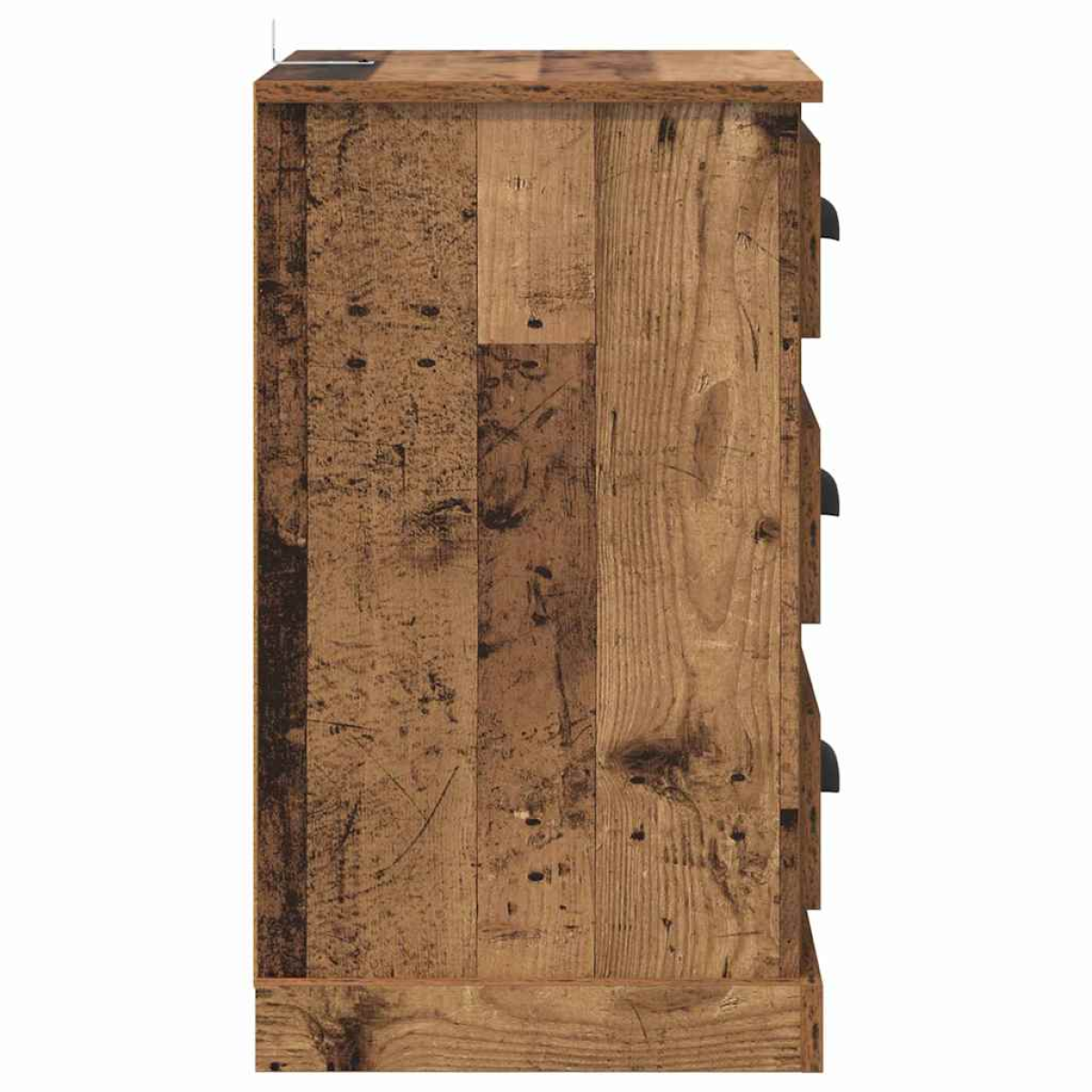This Engineered Wood Bedside Cabinet boasts a charming rustic design that perfectly complements any bedroom décor. With its square shape and natural textures, this bedside table exudes a cozy yet stylish vibe, ideal for holding your night essentials like a lamp or alarm clock. Its robust form and practicality make it a great addition to any bedroom, serving not only as a functional piece but also as an accent to your room's overall aesthetic. Materials: Crafted from high-quality engineered wood, this bedside cabinet provides both durability and a beautiful rustic finish. The engineered wood ensures the cabinet withstands daily use while maintaining its classic appearance, adding a touch of elegance to your bedroom. Included Components: Equipped with cup pull handles and traditional drawers, the cabinet ensures easy access to your nighttime essentials. The engineered wood components provide a seamless blend of functionality and style, making it both user-friendly and visually appealing. Features /Function /Design: The design focuses on ample storage, offering enough space to store personal items like books, glasses, or any bedtime necessities. This practical feature ensures your essentials are always within arm's reach, enhancing convenience in your daily routine. Recommended Uses: Perfect for indoor use in bedrooms, this cabinet aptly serves as a nightstand. Its compatibility with various room styles makes it versatile for different décor themes, whether in a modern or traditional setting. Care &Maintenance: The cabinet's matte finish simplifies cleaning procedures. Simply wipe it down with a damp cloth to maintain its pristine look. This easy maintenance routine ensures that the cabinet remains a staple piece in your home for years to come.