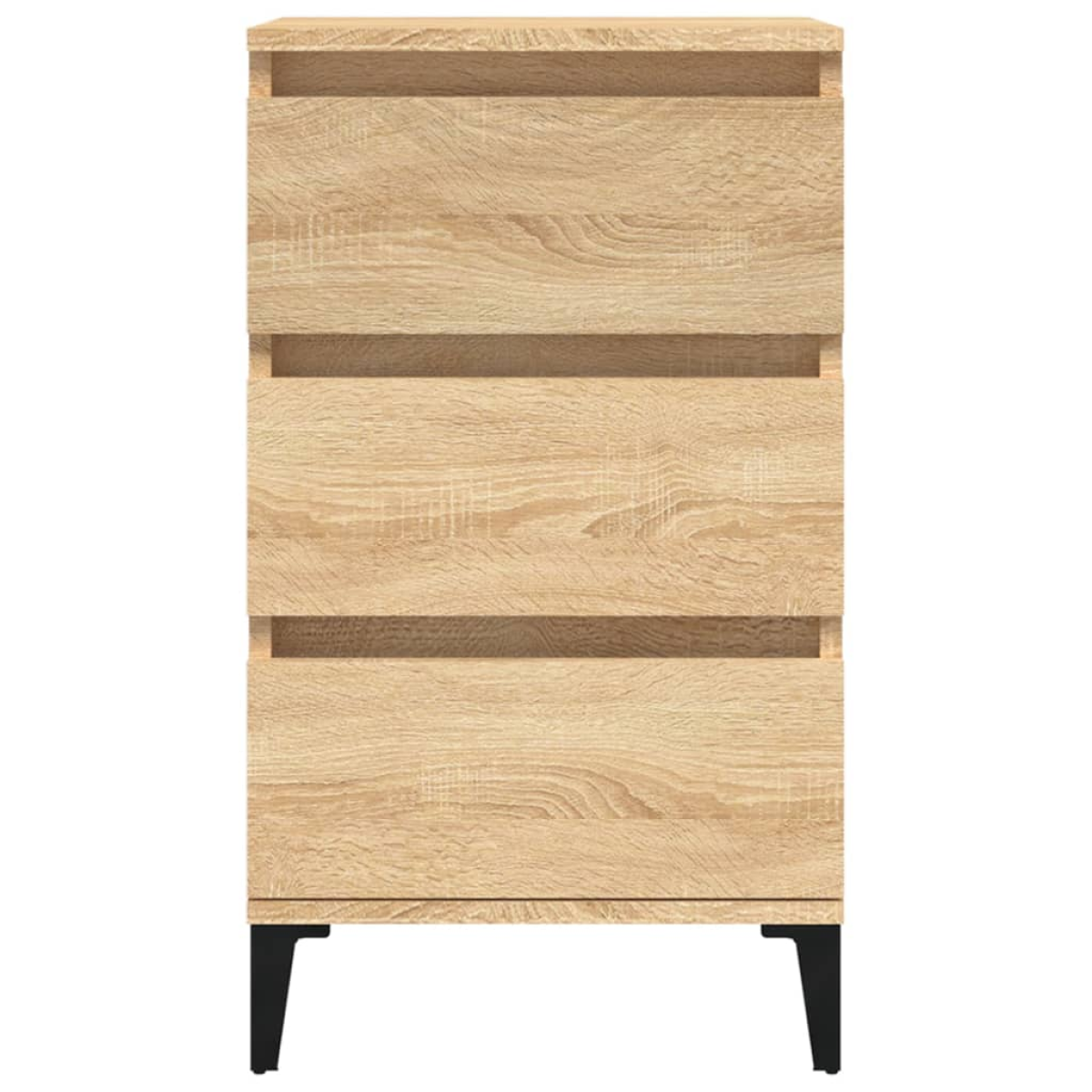 This trendy bedside cabinet, featuring an industrial style, is designed to upgrade your interior to the next level. Durable material: The engineered wood is of exceptional quality with a smooth surface and also features strength, stability, and resistance to moisture.Metal feet: The metal feet offer sturdiness and stability for the side table.Ample storage space: With a smooth tabletop and 3 drawers, the bedside table helps organize your books, TV accessories, glasses, and coffee cups within your arm's reach.Multifunctional design: This industrial-style cabinet is ideal to serve as a nightstand next to your bed, an side table next to the couch in the living room, or as an additional cabinet in the study. WARNING:In order to prevent overturning, this product must be used with the wall attachment device provided. Good to know:Each product comes with an assembly manual in the box for easy assembly.