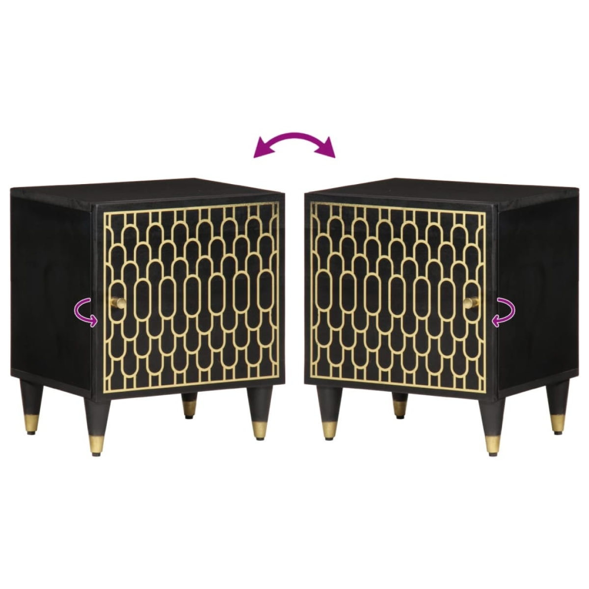 These bedside cabinets with an elegant design make a timeless addition to your interior decor. Solid mango wood: Solid mango wood is a strong, tropical hardwood that makes sturdy furniture. Its beautiful wood grains make every piece of furniture slightly different from the next. Made of solid mango wood, the cabinet is durable and stable.Practical door: Keep your space clutter-free by hiding small essentials behind the door of the bedside table.Stable top: The top of the side cabinet is perfect for displaying your decorative items, picture frames and potted plants.Sturdy legs: The iron legs add to the bedroom furniture's sturdiness and stability.Retro style: This bed side cabinet with hand-carved floral patterns brings the luxury of retro style to your interior, being the focal point of your room. Good to know:Each item is unique with variations in colours and grains. The delivery is random, ensuring the exclusivity and individuality of your product.