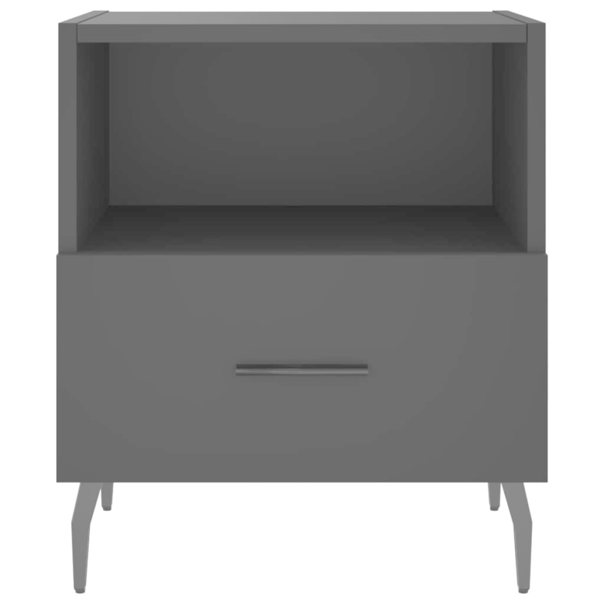 Introduce an air of modern charm to your interior with these bedside cabinets! Durable material: The engineered wood is of exceptional quality with smooth surface and also features strength, stability and resistance to moisture. Spacious storage space: The bedside cabinet has a compartment and a drawer, providing spacious storage space to keep your books, multimedia appliances and other items within reach. Displaying function: You can also place your favourite photos, decorations or flowers on top of the side cabinet to enrich your life. Metal feet: The metal feet add a calm style to your interior while ensuring stability.