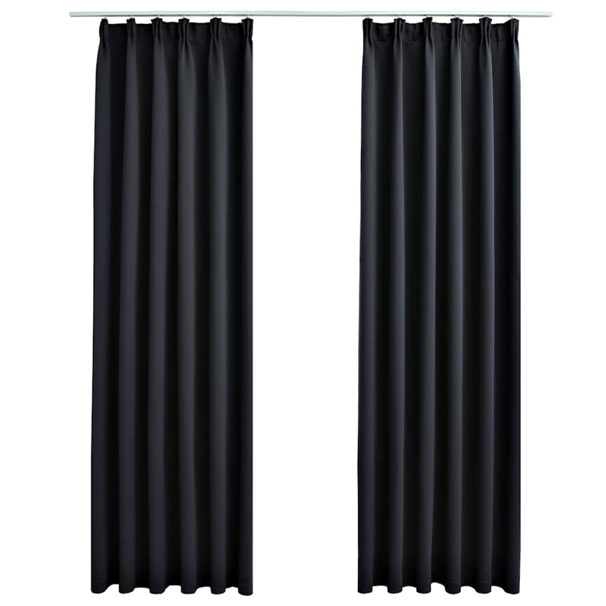 vidaXL Blackout Curtains with Hooks 2 pcs Black 140x225 cm