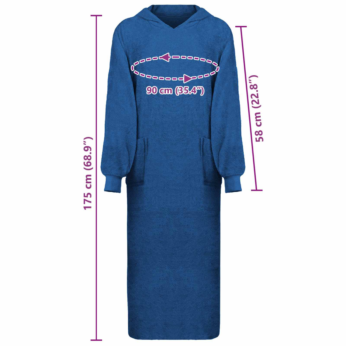 The Wearable Blanket Hoodie is a luxurious addition to your loungewear collection, merging practicality with comfort. Characterized by its modern style, this blanket combines the warmth of a cozy hoodie with the functionality of a traditional blanket. Its oversized design makes it suitable for various body types, making it a comforting choice for chilly indoor environments. Materials: Crafted exclusively from cotton, this Blanket Hoodie offers a soft, breathable fabric that ensures warmth and comfort during those cold winter months. The natural cotton fibers provide a plush feel against the skin, making it an ideal choice for sensitive skin while allowing for easy maneuverability. Included Components: The Blanket Hoodie includes generously sized front pockets, designed to keep your hands warm or conveniently store small personal items. This functional aspect ensures that the wearer can enjoy both warmth and practicality, ideal for lounging or casual errands around the home. Features /Function /Design: The Blanket Hoodie features an extra soft texture, enhancing the overall comfort experience. Its modern design, with simplicity and functionality at its core, creates an effortlessly stylish look. The oversized fit wraps you in a warm, fluffy cocoon, perfect for combating the chill while offering a minimalist aesthetic. Recommended Uses: Perfectly suited for indoor use, this Blanket Hoodie is the ultimate companion for lounging in the living room, reading by the fireplace, or snuggling in bed. Its design makes it suitable for any relaxed setting where warmth and comfort are priorities. Care &Maintenance: Easily maintained, this Blanket Hoodie can be machine washed, allowing it to retain its soft texture and look fresh. This facilitates hassle-free care, ensuring long-lasting enjoyment and functionality.