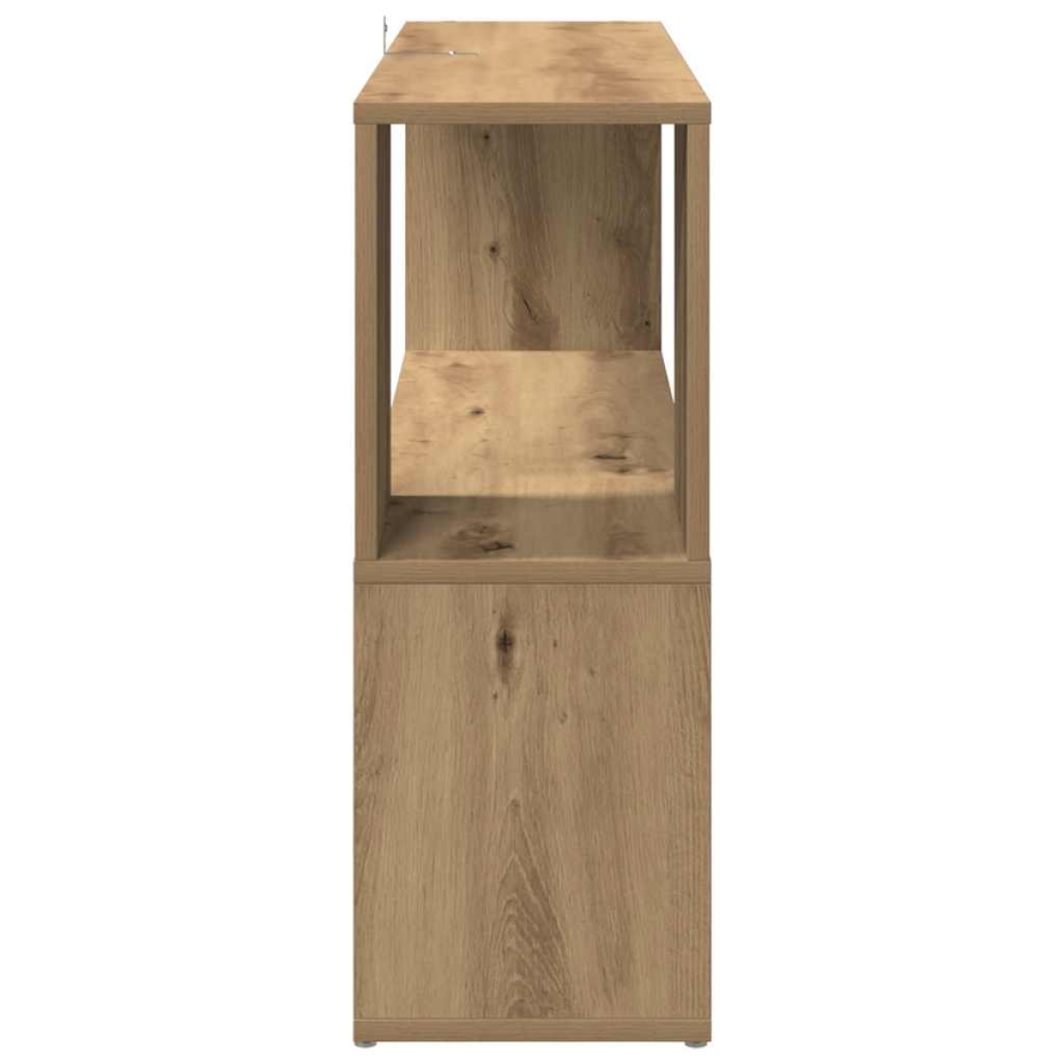 This versatile book cabinet will be a decorative yet practical addition to your home decor. Stable and durable material: Engineered wood is a durable and stable material with a smooth surface that is resistant to moisture, warping, and splitting, making it a reliable choice for a variety of projects.Ample storage space: With open compartment on each side, this bookcase has 2 shelves that offer ample storage space for keeping your magazines, books, DVDs, multimedia devices and other decorative items well organised and within reach.Modern design: Add a modern style to your existing interior! The modern design features clean lines, minimalistic looks, and natural light as a part of the interior design style. Warning:To prevent it from tipping over, this product must be used with the provided wall attachment device.