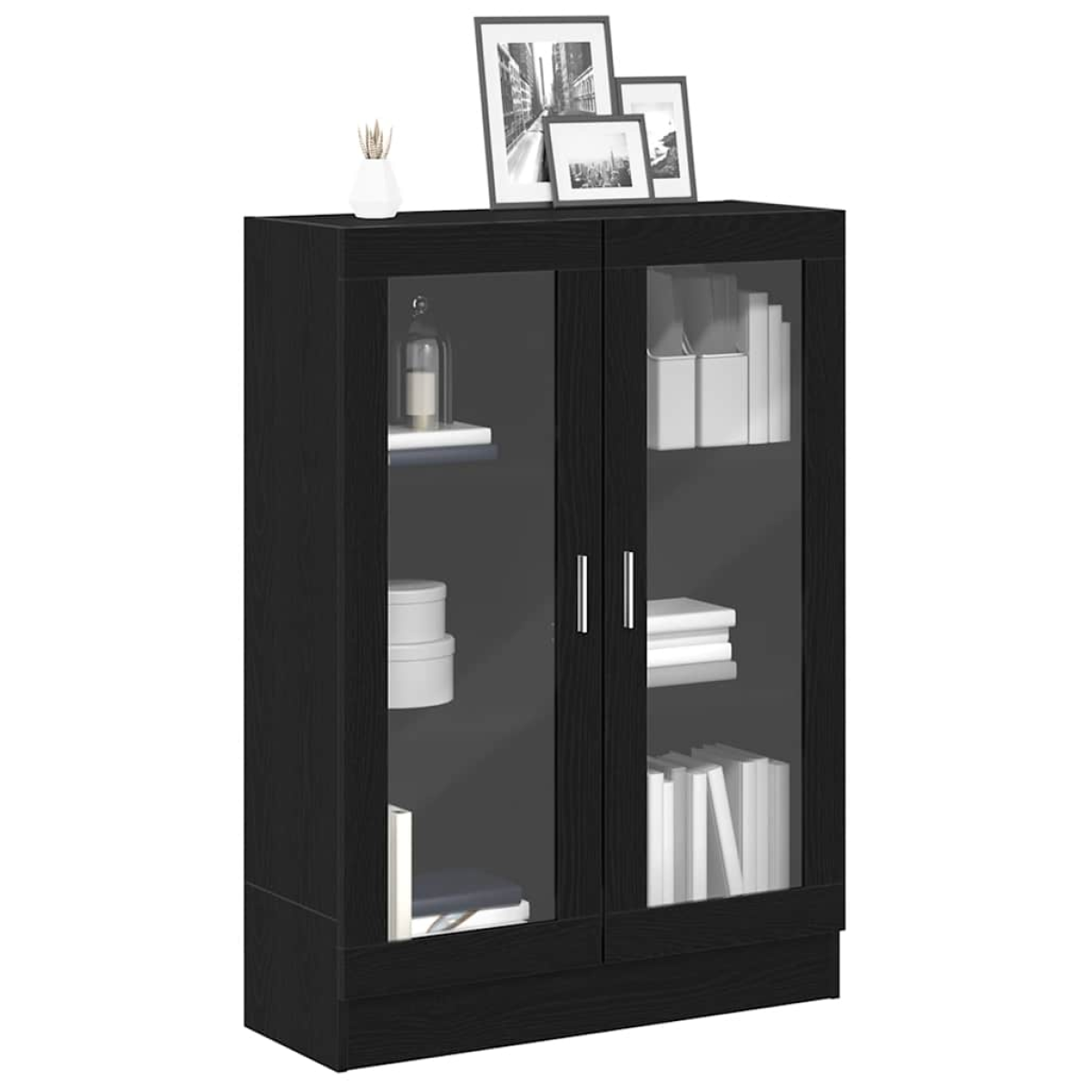 This book cabinet, featuring a sleek and classic design, is meant to be a decorative as well as practical addition to your existing home decor. Durable material: The engineered wood is of exceptional quality with smooth surface and also features strength, stability and resistance to moisture.Ample storage space: Designed with 3 spacious compartments, the bookcase offers ample storage space for keeping your magazines, books, DVDs, multimedia devices and other decorative items well organised and within reach.Practical glass doors: Thanks to the glass doors, the cabinet is ideal for organising your items away from dust while displaying various things.Versatile usage: The book cabinet is also a perfect storage solution for any other living space.Easy to maintain: Thanks to its smooth surface, the storage cabinet is easy to clean with a damp cloth and requires less maintenance. Warning:To prevent it from tipping over, this product must be used with the provided wall attachment device.