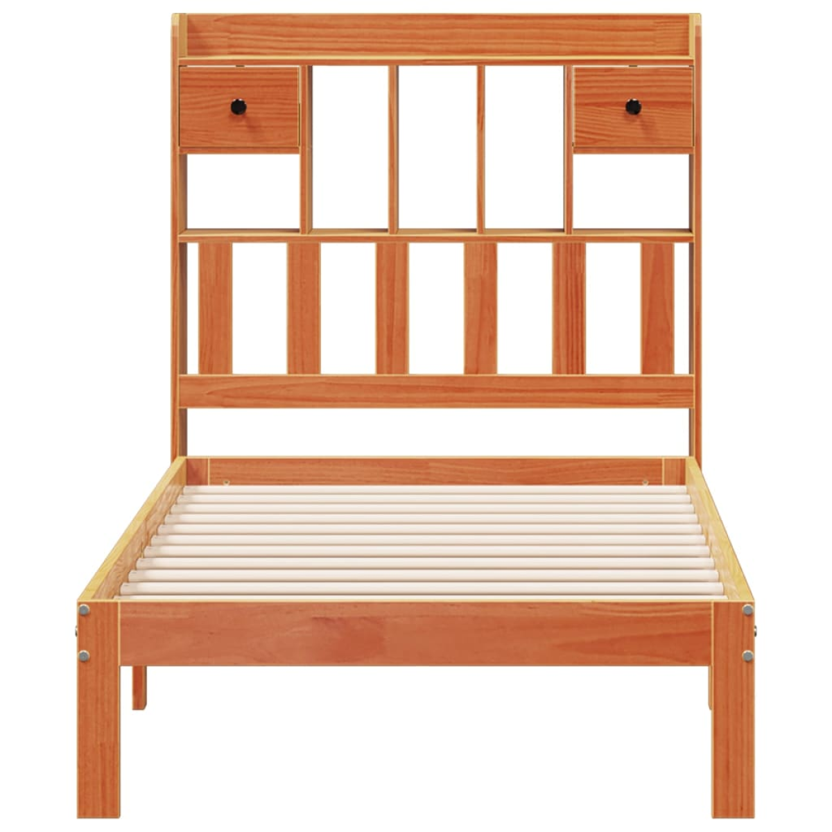 Get a better restful night's sleep from this bookcase bed! It makes a welcoming addition to any bedroom. Stable and long-lasting frame: Solid pinewood is known for its strength and durability. Its straight grains and distinctive knots contribute to its rustic charm. Slatted base for optimal support: The bed frame is equipped with a slatted base for support and breathability for your mattress. Ample storage space: This bookcase headboard offers ample storage space to keep books, decorative items, or personal belongings within easy reach, reducing clutter in the bedroom. Space saving: This headboard is a space-saving option that can replace the need for a bedside table, helping maximise your bedroom space, and making it ideal for small or limited spaces. Good to know:A mattress is not included with this bed. We do offer a various selection of mattresses. You can check our shop for a matching mattress.