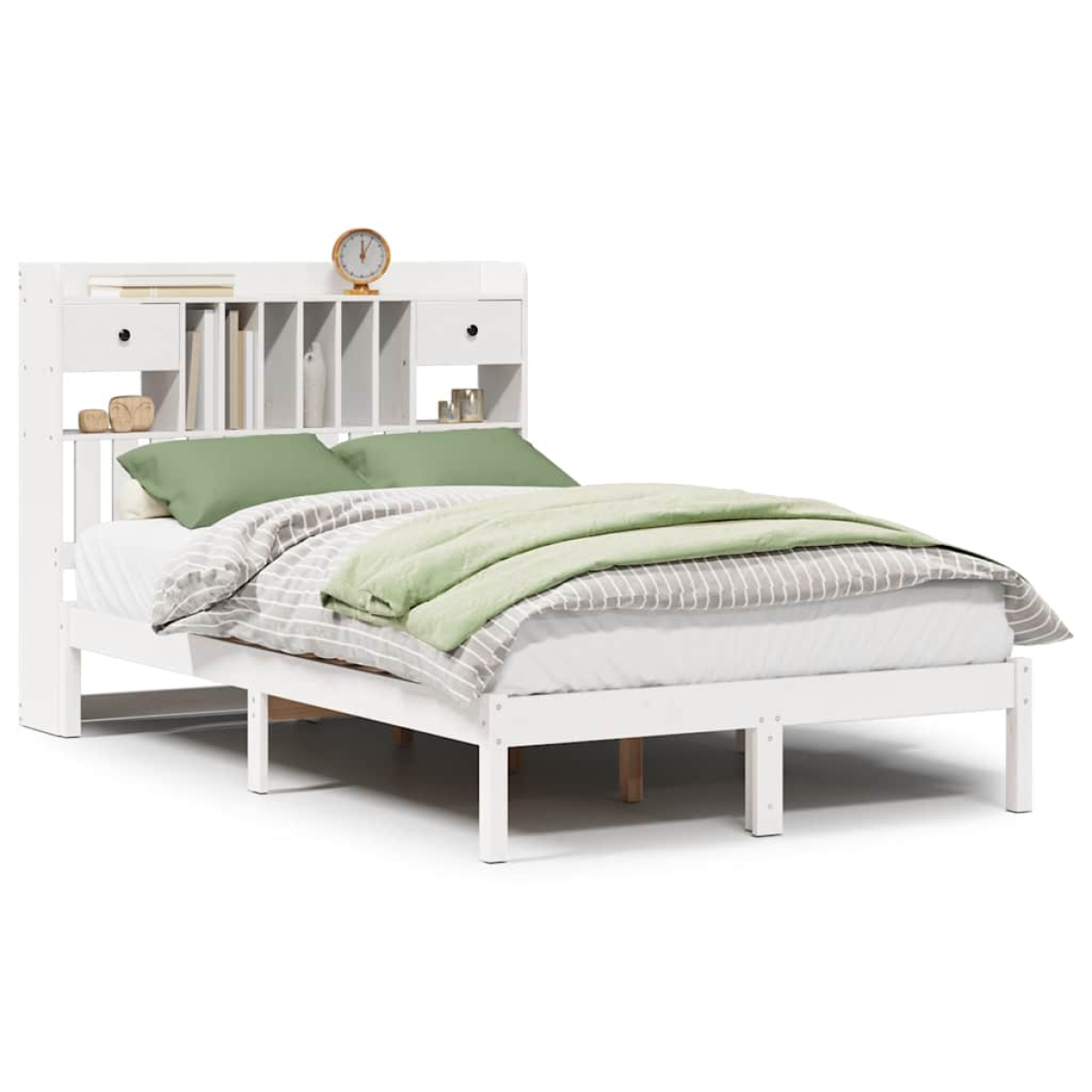 Get a better restful night's sleep from this bookcase bed! It makes a welcoming addition to any bedroom. Stable and long-lasting frame: Solid pinewood is known for its strength and durability. Its straight grains and distinctive knots contribute to its rustic charm.Slatted base for optimal support: The bed frame is equipped with a slatted base for support and breathability for your mattress.Ample storage space: This bookcase headboard offers ample storage space to keep books, decorative items, or personal belongings within easy reach, reducing clutter in the bedroom.Space saving: This headboard is a space-saving option that can replace the need for a bedside table, helping maximise your bedroom space, and making it ideal for small or limited spaces. Good to know:A mattress is not included with this bed. We do offer a various selection of mattresses. You can check our shop for a matching mattress.