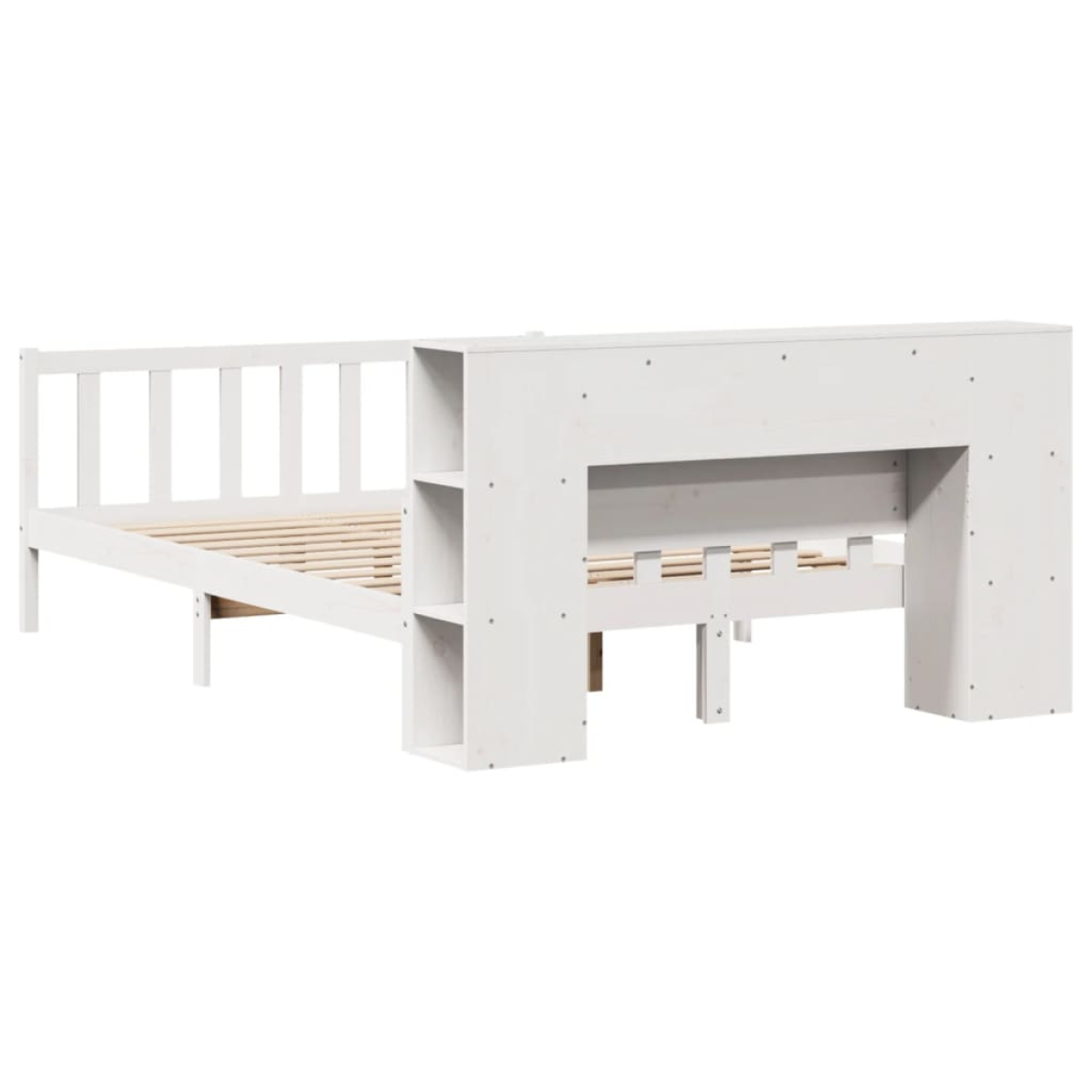 Get a better restful night's sleep from this bookcase bed! It makes a welcoming addition to any bedroom. Stable and long-lasting frame: Solid pinewood is known for its strength and durability. Its straight grains and distinctive knots contribute to its rustic charm.Slatted base for optimal support: The bed frame is equipped with a slatted base for support and breathability for your mattress.Ample storage space: This bookcase headboard offers ample storage space to keep books, decorative items, or personal belongings within easy reach, reducing clutter in the bedroom.Practical footboard: The footboard not only contributes to the overall stability of the bed frame, providing a safe sleeping environment, but it also secures your mattress in place and prevents blankets, sheets and other bedding from falling off the end of the bed, maintaining a neat appearance.Space saving: This headboard is a space-saving option that can replace the need for a bedside table, helping maximise your bedroom space, and making it ideal for small or limited spaces. Good to know:A mattress is not included with this bed. We do offer a various selection of mattresses. You can check our shop for a matching mattress.