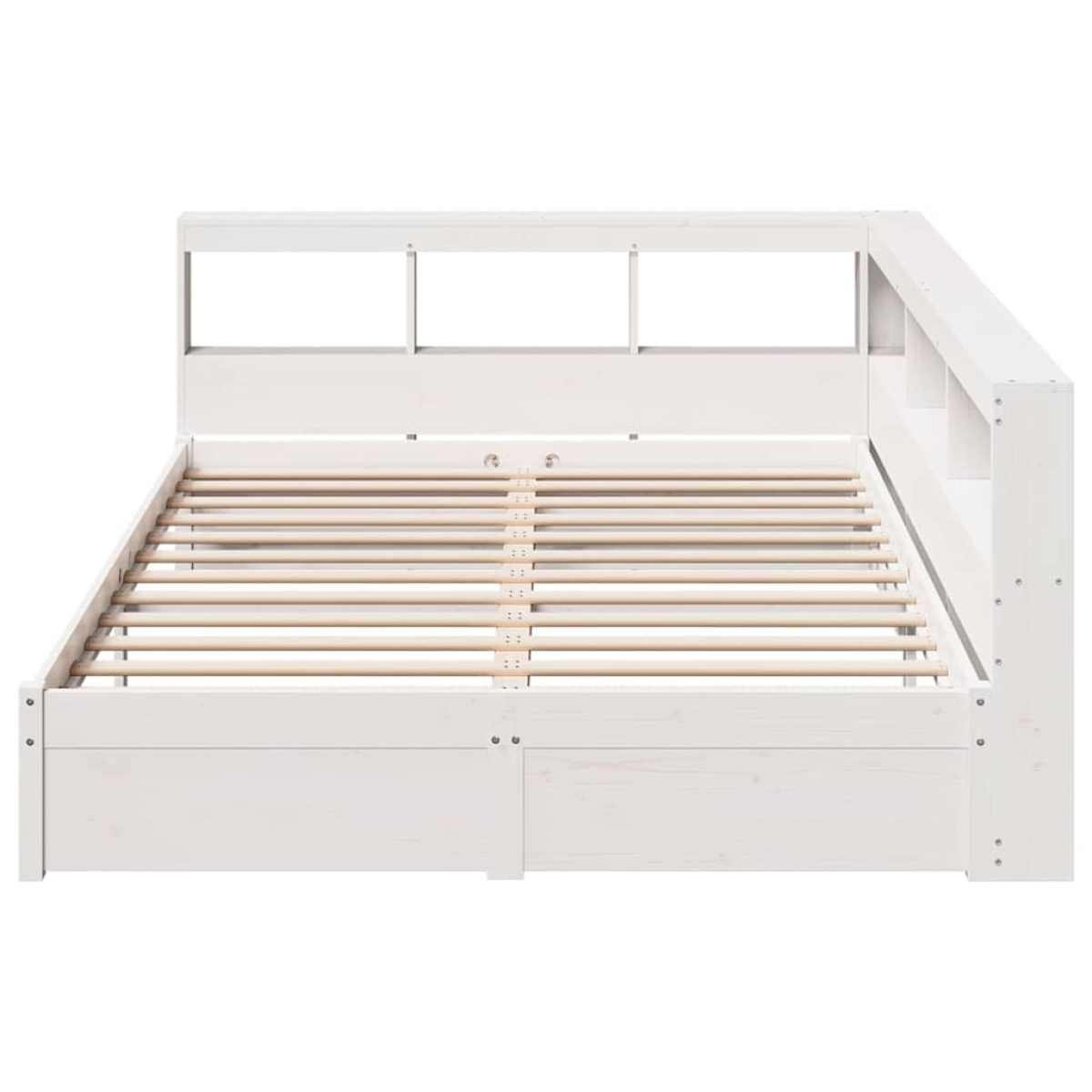 Get a better restful night's sleep from this bookcase bed! It makes a welcoming addition to any bedroom. Stable and long-lasting frame: Solid pinewood is known for its strength and durability. Its straight grains and distinctive knots contribute to its rustic charm.Slatted base for optimal support: The bed frame is equipped with a slatted base for support and breathability for your mattress.Ample storage space: This headboard features built-in storage to keep books, decorative items, and essentials organised and within reach, adding functionality and style to your bedroom.Two assembly ways: This bookcase headboard offers flexible assembly options, allowing you to place its long side on either the left or right side to match your bedroom space.Space saving: This L-shaped headboard fits snugly against the bed, creating a partial enclosure to maximise bedroom space. It is an ideal choice for smaller or more confined areas. Good to know:A mattress is not included with this bed. We do offer a various selection of mattresses. You can check our shop for a matching mattress.
