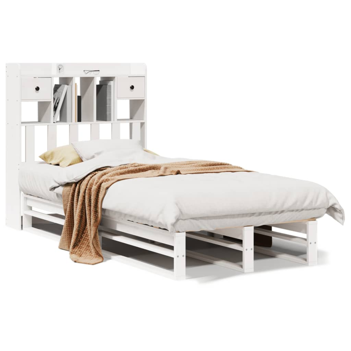 vidaXL Bookcase Bed without Mattress White 75x190 cm Small Single Solid Wood Pine