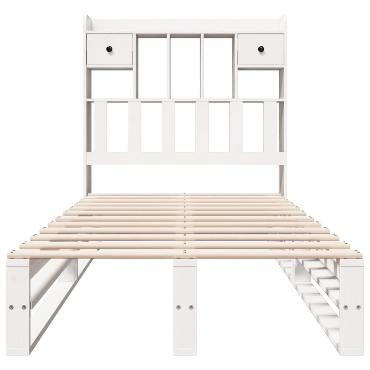 Get a better restful night's sleep from this bookcase bed! It makes a welcoming addition to any bedroom. Stable and long-lasting frame: Solid pinewood is known for its strength and durability. Its straight grains and distinctive knots contribute to its rustic charm.Slatted base for optimal support: The bed frame is equipped with a slatted base for support and breathability for your mattress.Ample storage space: This bookcase headboard offers ample storage space to keep books, decorative items, or personal belongings within easy reach, reducing clutter in the bedroom.Space saving: This headboard is a space-saving option that can replace the need for a bedside table, helping maximise your bedroom space, and making it ideal for small or limited spaces. Good to know:A mattress is not included with this bed. We do offer a various selection of mattresses. You can check our shop for a matching mattress.