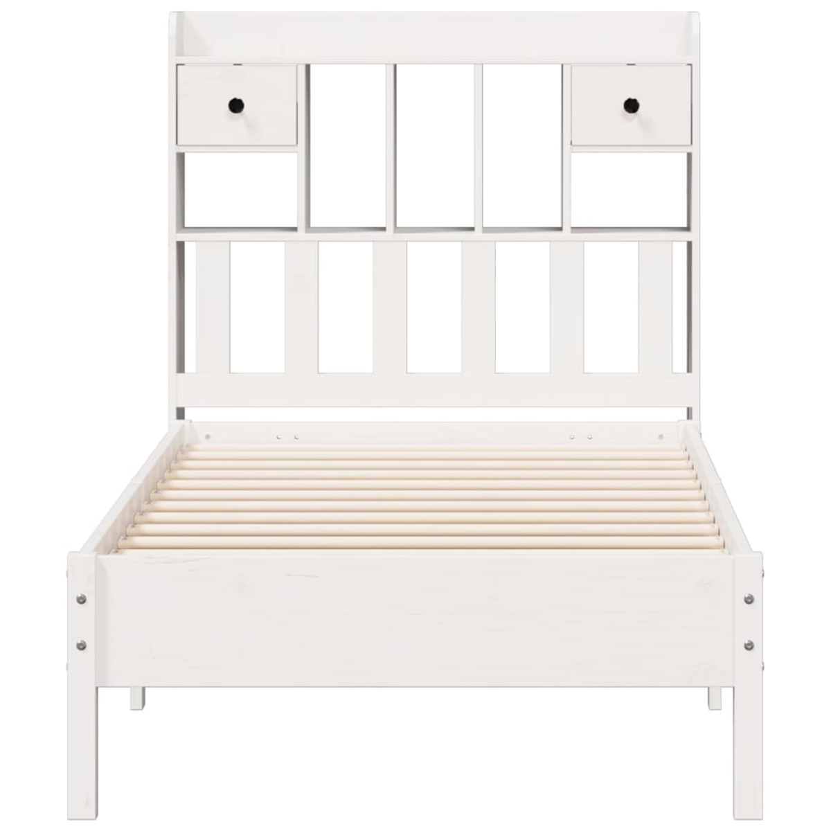 Get a better restful night's sleep from this bookcase bed! It makes a welcoming addition to any bedroom. Stable and long-lasting frame: Solid pinewood is known for its strength and durability. Its straight grains and distinctive knots contribute to its rustic charm.Slatted base for optimal support: The bed frame is equipped with a slatted base for support and breathability for your mattress.Ample storage space: This bookcase headboard offers ample storage space to keep books, decorative items, or personal belongings within easy reach, reducing clutter in the bedroom.Space saving: This headboard is a space-saving option that can replace the need for a bedside table, helping maximise your bedroom space, and making it ideal for small or limited spaces. Good to know:A mattress is not included with this bed. We do offer a various selection of mattresses. You can check our shop for a matching mattress.