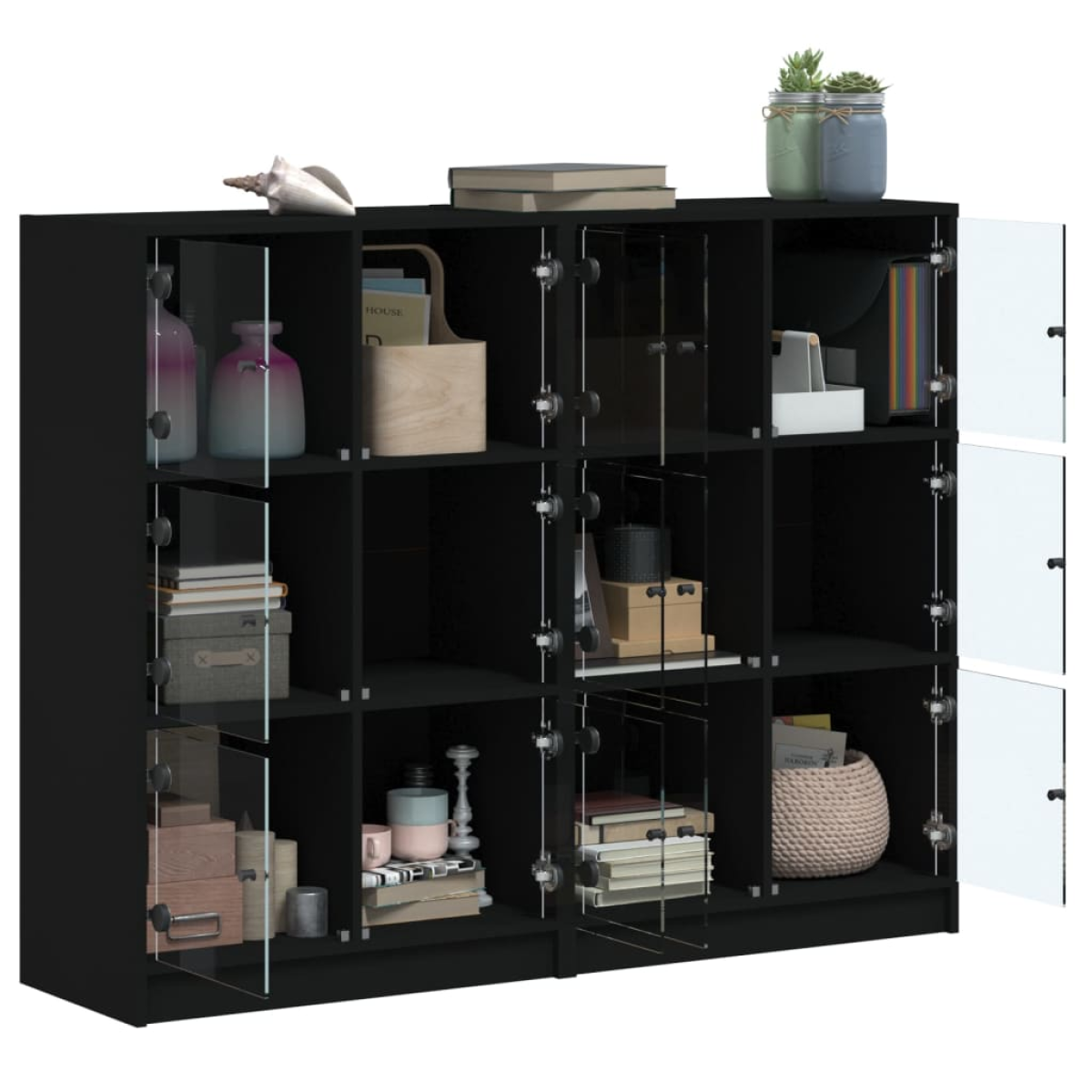 vidaXL Bookcase with Doors Black 136x37x109 cm Engineered Wood