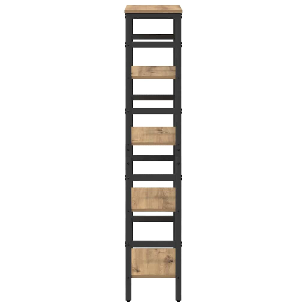 This Industrial Bookshelf stands as a striking exemplar of contemporary industrial aesthetics, characterized by its sleek, bold lines and raw materials, making it an ideal addition to home offices, studies, or living rooms. With its robust structure crafted from engineered wood and steel, this freestanding unit seamlessly combines functionality with modern flair. The richly layered shelves offer ample room for storing books, decor, and other essentials, embodying both style and utility as it complements a variety of urban and rustic settings. Industrial Style Design The bookshelf elevates any environment with its industrial-inspired design, reflecting the rugged charm of industrial spaces with clean lines and a bold, black finish. This aesthetic appeal makes it a versatile centerpiece, fitting seamlessly into home offices, living rooms, or studies, providing a modern edge to the decor. Ample Storage Capacity Featuring numerous rectangular board shelves made from engineered wood, this bookshelf ensures each shelf is ready to hold a substantial amount of books, decor items, or office essentials. Its easy-access shelves invite organization and display, seamlessly integrating utility and style for a tidy, stylish space. Robust Construction Built with a steel frame and square legs, the bookshelf guarantees steadfast support, ideal for heavy loading. The engineered wood surface adds durability, making it abrasion-resistant and low-maintenance, ensuring the bookshelf's longevity through daily use, while maintaining its aesthetic appeal. Adjustable Stability Levelers on the bookshelf’s feet provide easy adjustments to stabilize it on uneven surfaces. The inclusion of levelers not only protects floor finishes but also ensures that the bookshelf maintains its sturdiness and balance even on slightly sloped floors. Simple Maintenance Instructions Designed with convenience in mind, the bookshelf surfaces require minimal maintenance. Wipe with a dry cloth to keep it dust-free and maintain its pristine appearance. Avoid harsh chemicals and abrasives, preserving its finish against wear, tear, and unnecessary cleaning-induced deterioration.