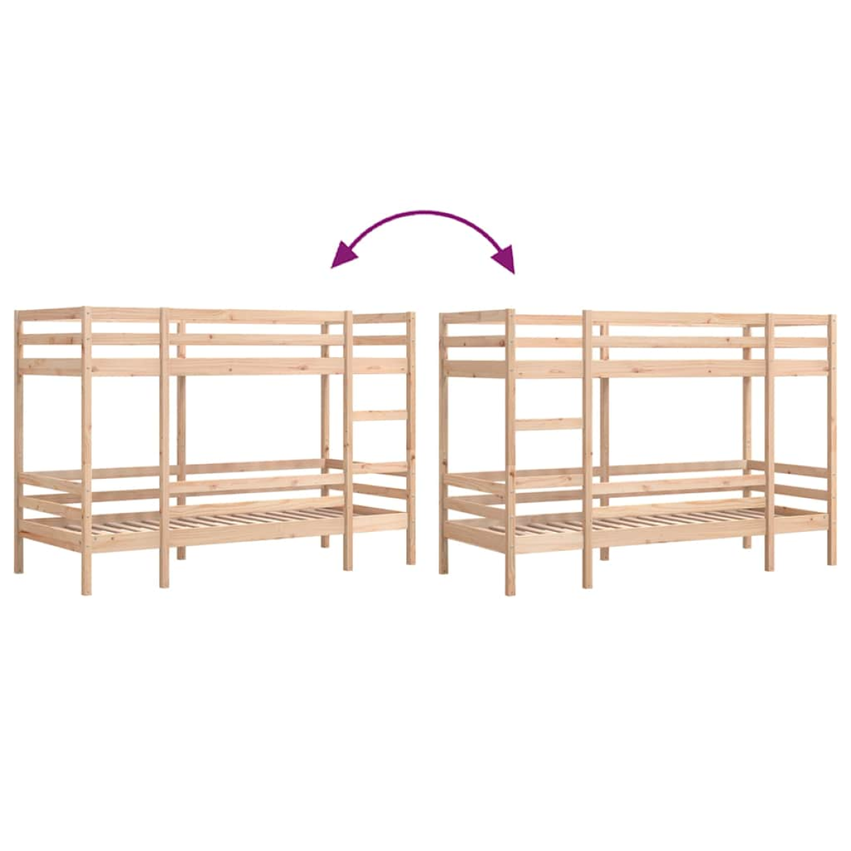 This wooden bunk bed is elegant and functional, making it a perfect addition to any room with limited space. Robust and stable: Solid pinewood is known for its strength and durability. Its straight grains and distinctive knots contribute to its rustic charm.Safe design: The loft bed is designed with safety in mind. It features guardrails to keep the user from rolling out while sleeping.Practical ladder: The ladder of this bunk bed makes sleeping on the upper floor easier and safer and offers you sufficient safety and stability.Suitable for limited space: The solid wood bunk bed makes an excellent choice for any room with limited space. It provides two individual beds with a compact design. Good to know:The delivery includes bed frames only. The mattresses are not included. You can check our shop for matching mattresses. Warning:To prevent it from tipping over, this product must be used with the provided wall attachment device.