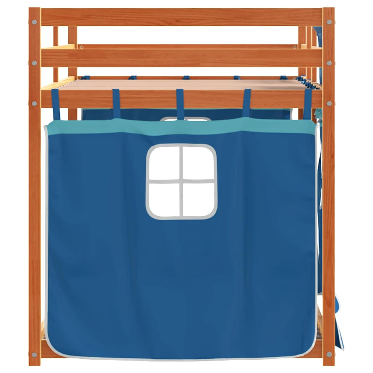 This wooden bunk bed is elegant and functional, making it a perfect addition to any room with limited space. Solid pine wood: This bunk bed is made of solid pine wood for stability and durability. Pine wood has a straight grain, and the knots give the material its signature, rustic look.Great fun: You can combine the curtains with the low bunk bed to create your child's secret base, providing great fun at bedtime and adding a focal point to the bedroom!Safety guardrails: The top bunk comes with safety guardrails on all 4 sides, so your child can sleep without worrying about falling off.Convenient ladder: This double bunk bed has a ladder that provides convenience for getting on and off the bed. It also brings joy and turns their room into an indoor playground. Good to know:A mattress is not included with this bed. We do offer a various selection of mattresses. You can check our shop for a matching mattress. Warning:To prevent it from tipping over, this product must be used with the provided wall attachment device.