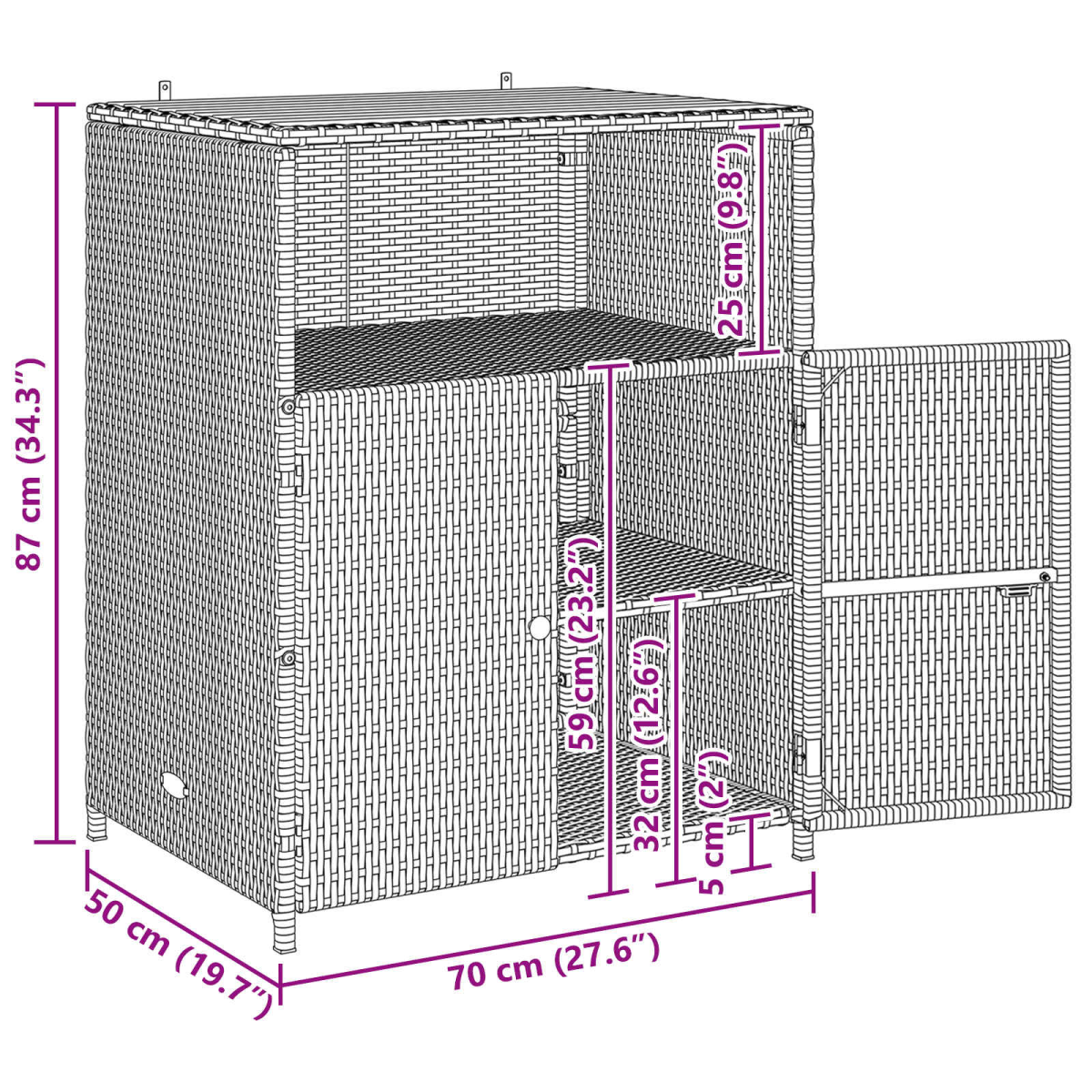 • Overall dimensions: 70 x 50 x 87 cm (L x W x H)