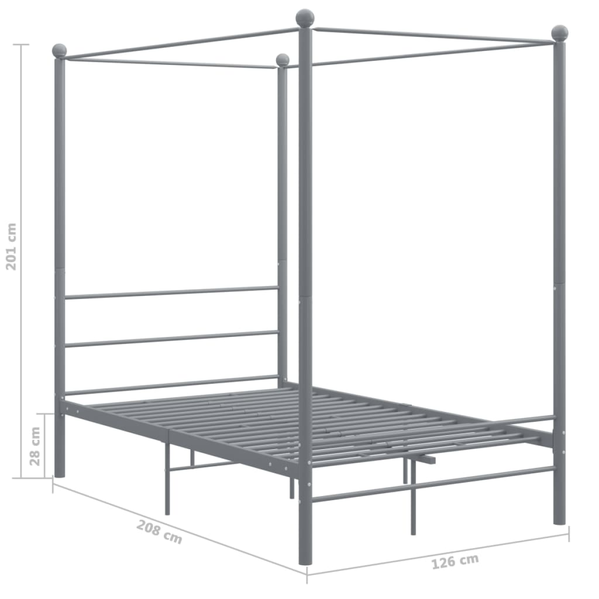 vidaXL Canopy Bed Frame without Mattress Grey Metal 120x200 cm