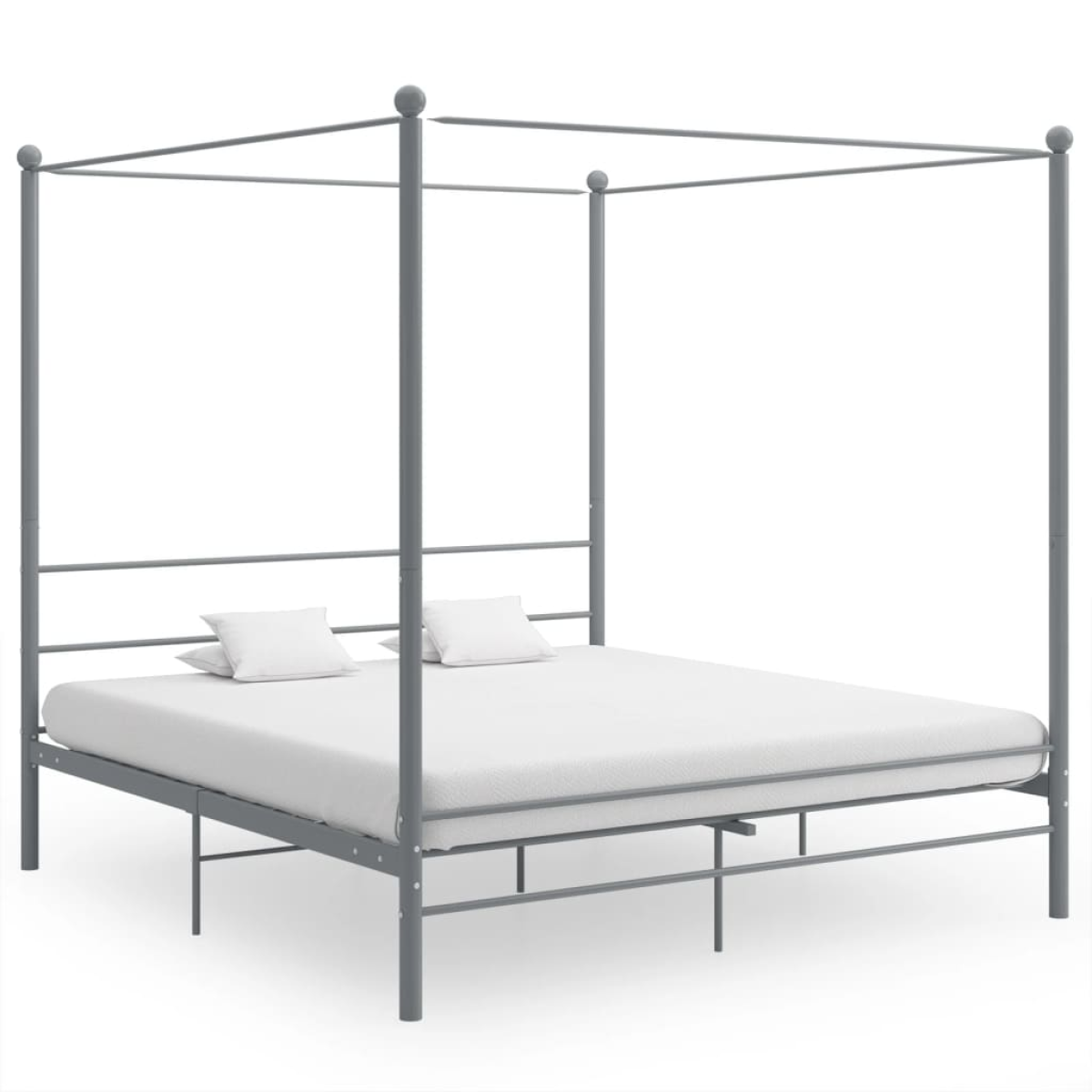 vidaXL Canopy Bed Frame without Mattress Grey Metal 180x200 cm Super King
