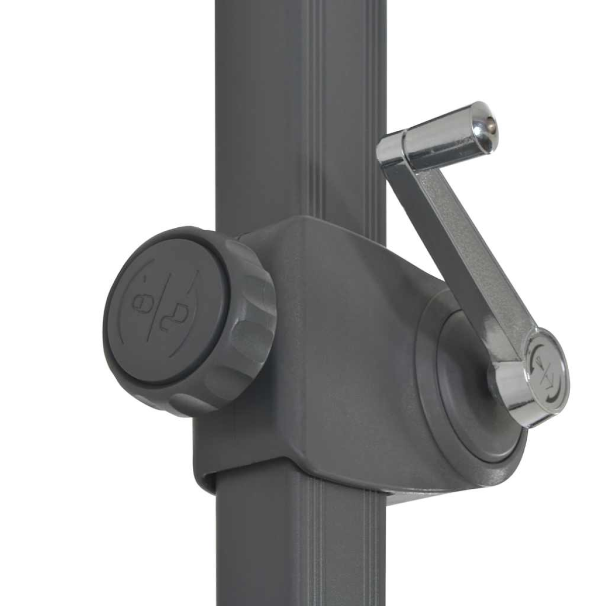 This elegant cantilever garden parasol is an excellent choice for creating some shade and protection from the sun's harmful UV rays. The parasol cover, made of UV protective and anti-fade polyester, provides you with optimum protection against the sun and is easy to clean. It features a sturdy cross base for added stability. The parasol's exclusive design allows you to tilt and rotate it 360 degrees to block the sun from any angle. The strong aluminium pole, along with the 8 durable ribs, makes the parasol very stable and durable. This garden umbrella can be easily opened and closed thanks to the crank mechanism. Please note: We recommend treating the umbrella fabric with a waterproofing spray if it is subjected to heavy rainfall.