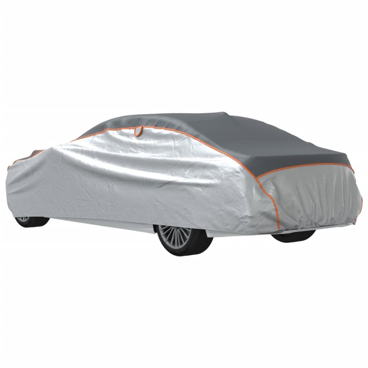 This car cover for sedan protects your vehicle against UV rays, scratches, hail, snow, rain, frost, dust, fallen leaves, industrial pollution, and bird droppings, making it ideal for indoor and outdoor use. Reliable hail protection: The car cover features a 4 mm thick EVA foam layer that effectively absorbs the impact of hail. Even during extreme hailstorms, the cover protects the windscreen from being penetrated, shields against severe bumps, and offers peace of mind.High-visibility reflector: This car cover features a reflector on the rear, which enhances visibility at night and reduces the risk of accidents.Good ventilation: The air vents promote optimal ventilation within the car cover, helping to prevent moisture buildup and maintain a breathable environment for your vehicle.Windproof design: The elastic edges of the cover ensure a snug fit for your car, while the adjustable straps with buckles at the bottom keep it secure, even on windy days.Easy storage: This car cover comes with a convenient storage bag, making it easy to store when not in use. Good to know:Before purchasing, please take precise measurements of your car to ensure you select the correct size.