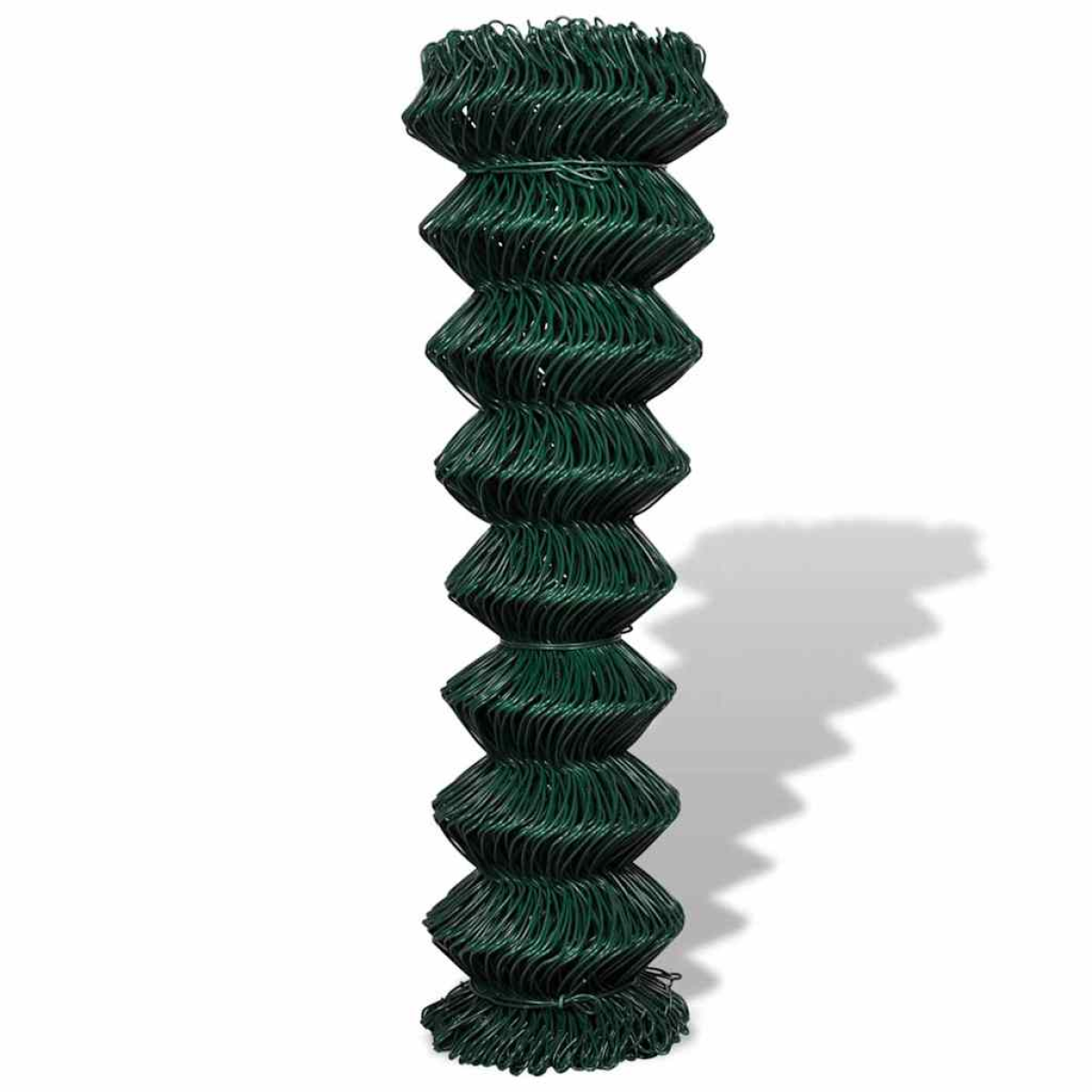 vidaXL Chain Link Fence Steel 1,5x25 m Green