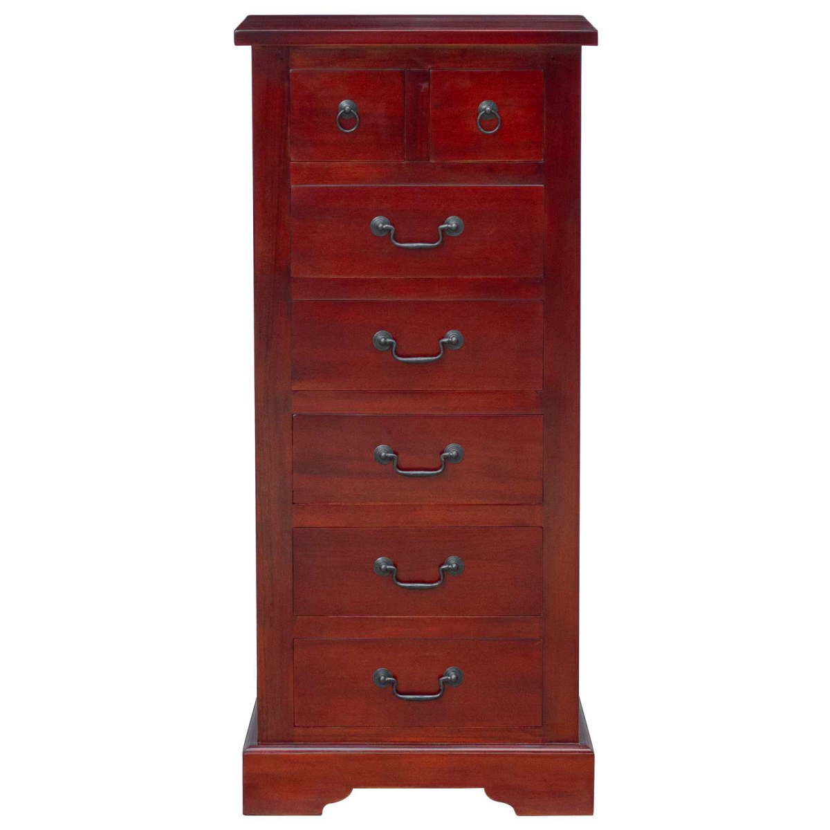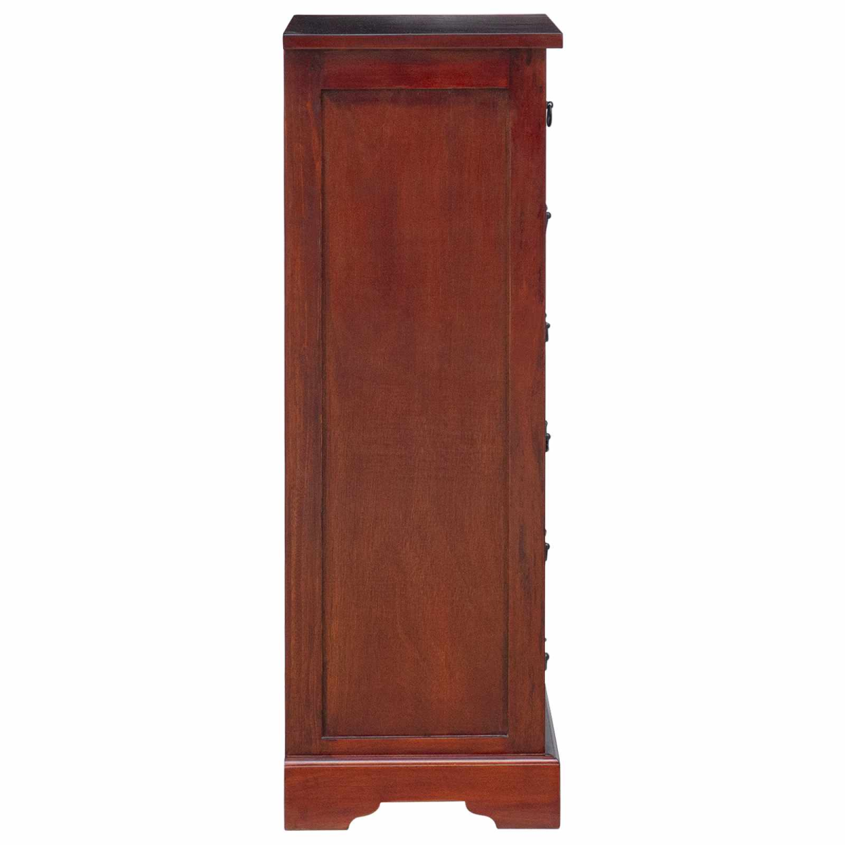 This elegant chest of drawers offers both function and style, with a timeless classic appeal that elevates any living space. Crafted from solid mahogany wood, it promises durability and stands resilient against everyday wear. Its smooth, painted surface adds a touch of sophistication, making it a versatile addition to both living rooms and bedrooms. Solid Mahogany Build This chest is carefully crafted from solid mahogany wood, a material chosen for its exceptional strength and beauty. Known for its richness in tone and fine grain texture, mahogany lends a luxurious feel to any room, while also promising a lasting presence over years of use. Its natural durability ensures that the chest remains a steadfast piece of furniture through daily demands. Spacious Drawer Design: Equipped with ample storage space, the chest features multiple drawers that provide generous room to organize clothing, linens, or accessories. The design ensures easy access while maintaining a tidy appearance, making it ideal for keeping daily essentials within reach. Each drawer glides smoothly, designed to handle frequent use effortlessly. Timeless Aesthetic: With its classic silhouette and brown painted finish, this chest of drawers complements a wide range of interior themes, from traditional to modern. The rich color balances beautifully in diverse decor settings, while the sleek lines offer a clean visual appeal. This combination assures it becomes a staple piece in any room. Minimal Maintenance Required: Maintaining the chest’s pristine look is simple with regular dusting using a soft, dry cloth. Its painted surface allows for quick and easy cleaning, ensuring that it continues to gleam and impress without the need for harsh chemicals or extensive efforts. Ready for Use: Delivered fully assembled, this chest is ready to be integrated into your home without delay. This eliminates the hassle of assembly, allowing immediate enjoyment of the furniture’s functionality and style, making it both a practical and attractive addition to any space.