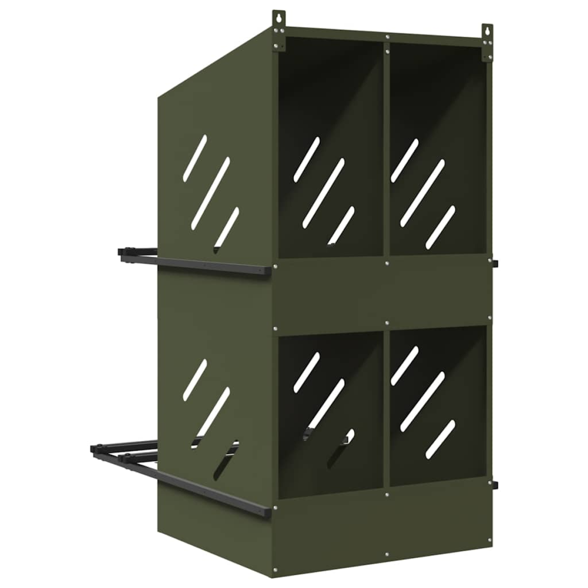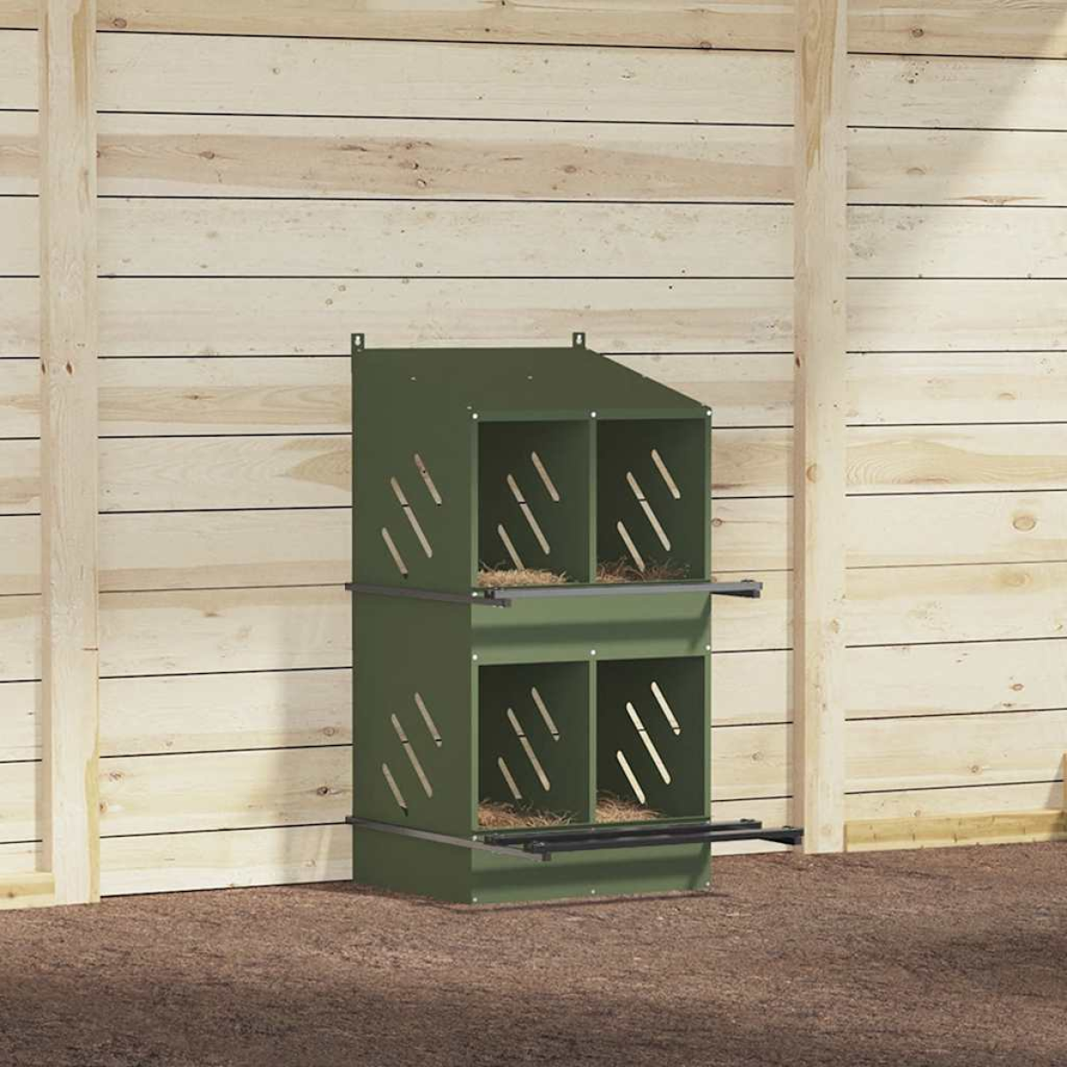 vidaXL Chicken Nesting Box with 4 Compartments Olive Green Metal