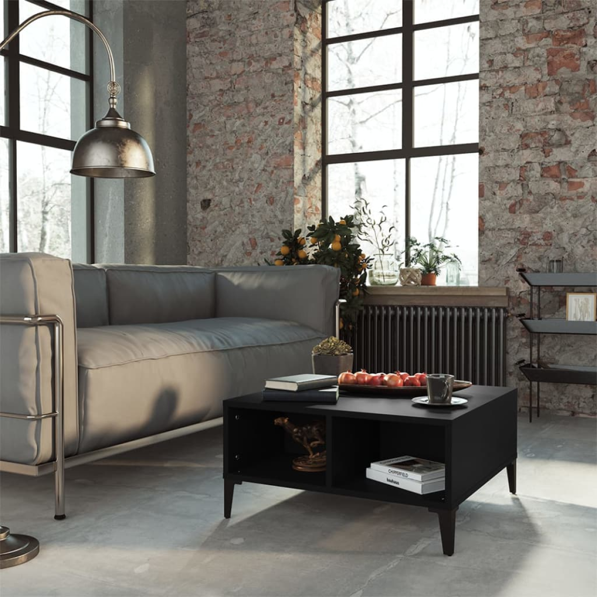 This coffee table featuring a modern design is practical furniture for your living space. This center table is made of engineered wood, which ensures its sturdiness, durability and long-lasting service. The metal legs also add extra stability. This side table features 4 compartments, providing ample storage space. The sturdy tabletop is perfect for placing your drinks, food and other decorative items. Additionally, the living room table is easy to clean with a damp cloth.