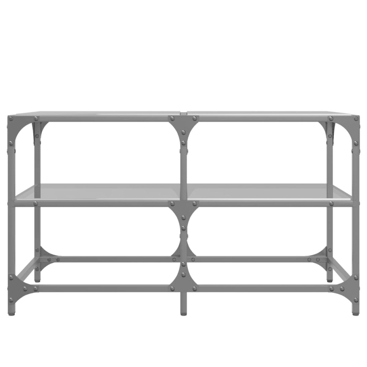 Add a touch of elegance to your living room with this stylish coffee table! Glass top: The top of the side table provides a visible and ample surface to place snacks, drinks, vases, fruit bowls, or other decorative items.Durable material: The engineered wood is of exceptional quality with a smooth surface and features strength, stability and resistance to moisture.Sturdy and stable frame: The stainless steel frame of the living room table ensures sturdiness and stability.Ample storage space: The side table has spacious storage space, providing ample space for your various storage needs and keeping your things organised.Easy maintenance: This coffee table with stain-resistant surface is easy to wipe clean and you can effortlessly keep the table looking its best.