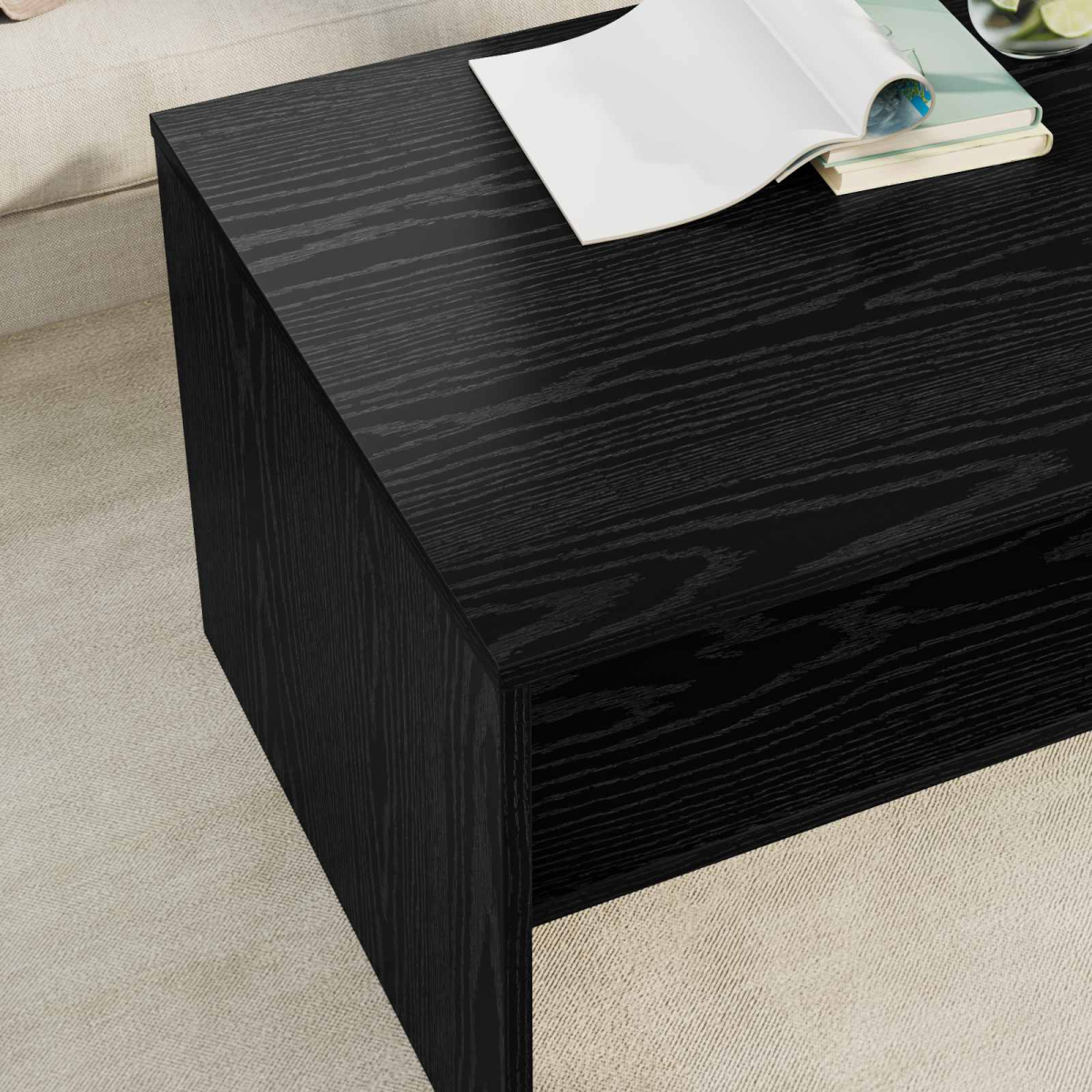 This modern coffee table boasts a sleek rectangular design, perfect for adding a touch of contemporary flair to any living room. Crafted from engineered wood, it offers a blend of durability and aesthetics, making it a staple piece for your home's central gathering space. Its surface is ideal for displaying decor or supporting drinks and reading materials, enhancing both function and style. Engineered Wood Construction Built from robust engineered wood, this coffee table ensures reliable durability and a smooth finish. This material choice not only provides an elegant appearance but also supports everyday use without compromising integrity, promising longevity as a centerpiece in your living space. Rectangular Shape Design The meticulously crafted rectangular design offers a modern aesthetic aligned with contemporary decor .This shape provides versatile positioning options, whether centered in a room or accompanying a sofa, making it an adaptable furniture piece for organizing living areas. Component Shelves The table features shelf-type board shelves that enhance functionality by offering storage solutions. These shelves are made from similar engineered wood, ensuring harmony in material and appearance, allowing you to store and organize books, magazines, and gadgets with ease. Indoor Use Only Specifically crafted for indoor settings, this table complements living spaces where style and function are paramount. Its design ensures that it remains an inviting aspect of your domestic sanctuary, catering perfectly to any living room requirement. Comprehensive Care Instructions To maintain its pristine condition, it is advised to avoid using harsh chemicals during cleaning. Following the provided assembly instructions ensures effective setup, while simple care guarantees the product remains a cherished piece over time.