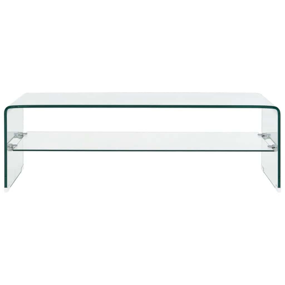 Introduce a flair of contemporary charm into your interior with this minimalist style and timeless coffee table! The coffee table is made of tempered safety glass which is safer and stronger than normal glass. Thanks to its integrated shelf, this practical coffee table will help to keep your living space free of clutter, making it perfect for books, magazines, as well as various other small items you'd like to keep within reach. Additionally, the sturdy construction enables the table exceedingly durable. Relax and enjoy entertaining your family and friends around this unique coffee table!