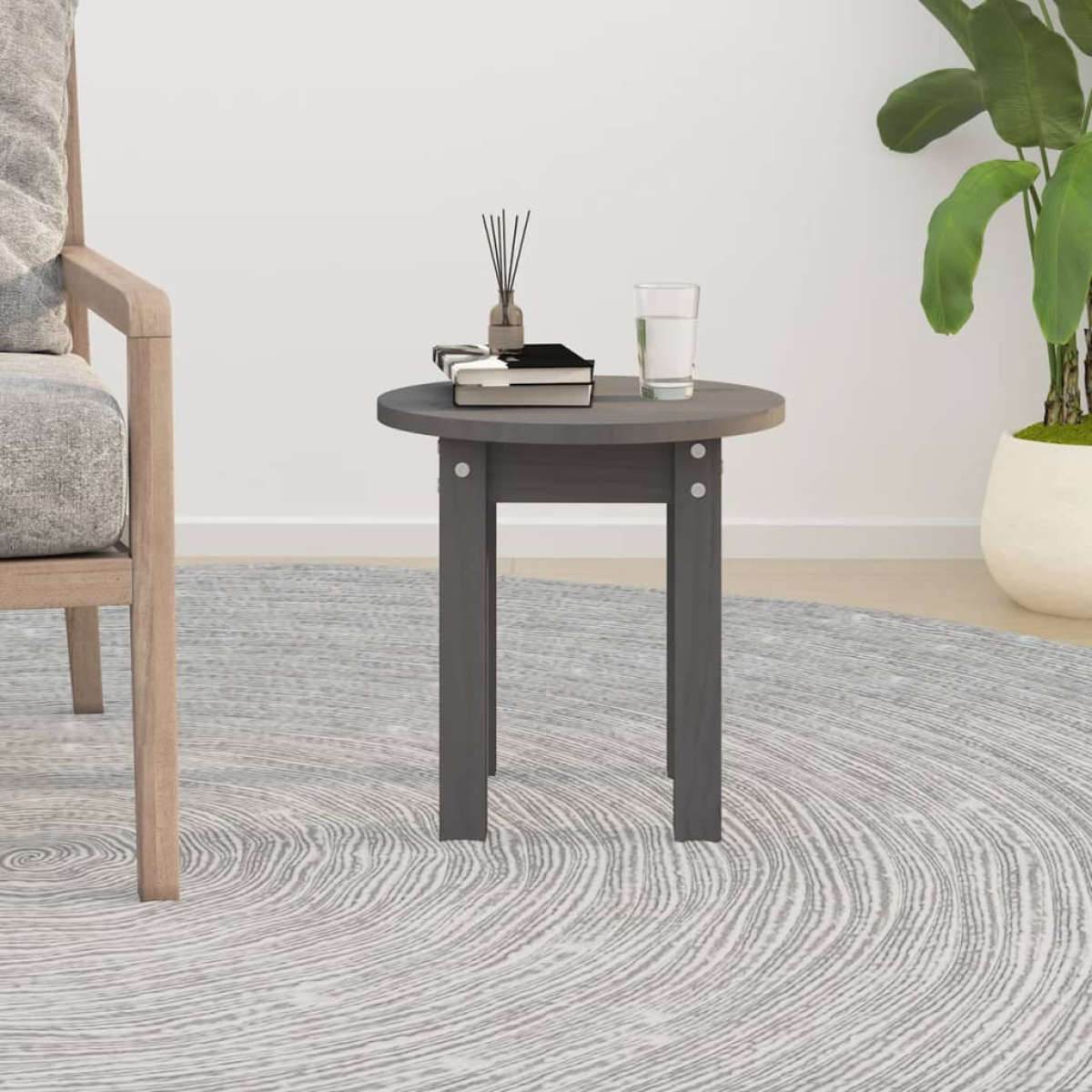 vidaXL Coffee Table Grey Ø 35x35 cm Solid Wood Pine