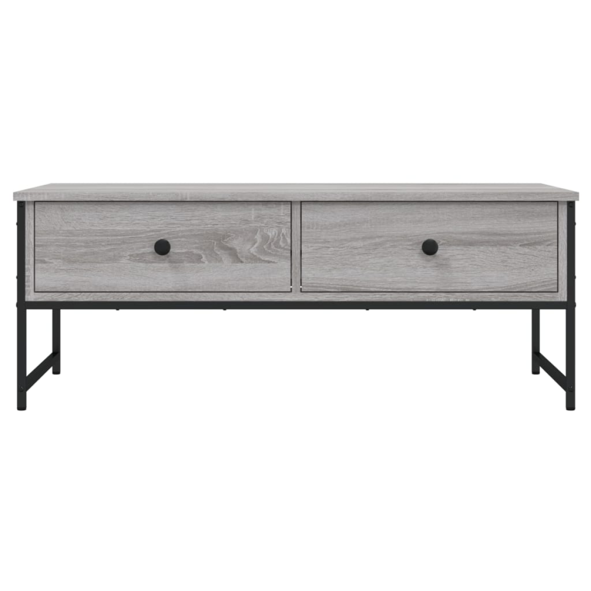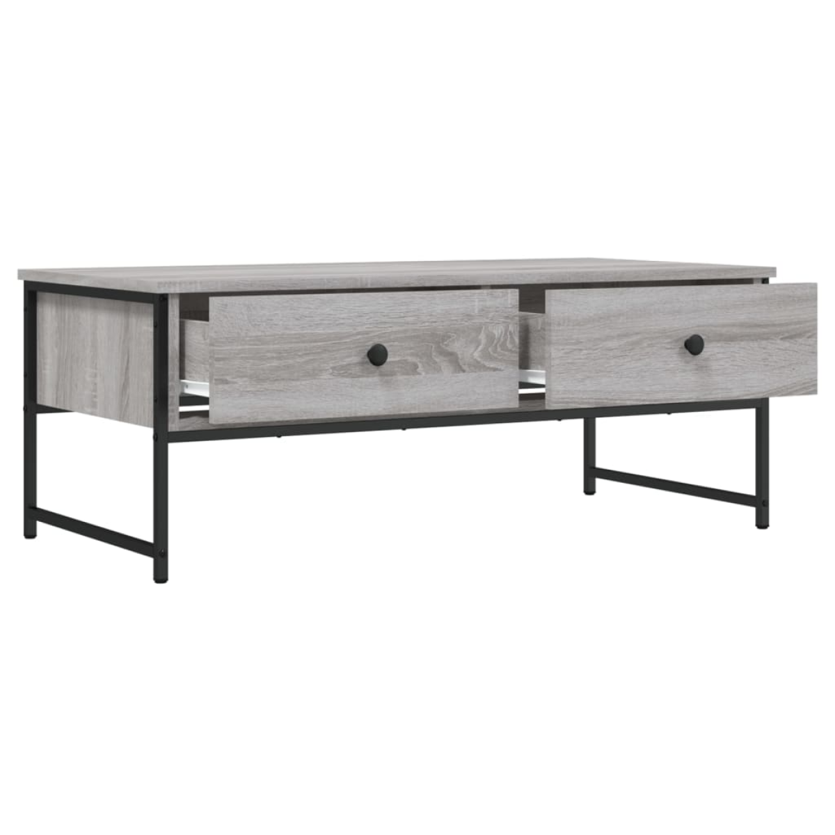 Decorate your living room with this stylish coffee table, it easily blends with furniture in any style at your house. Durable material: The engineered wood is of exceptional quality with smooth surface and also features strength, stability and resistance to moisture. Made of engineered wood, the sofa table is easy to clean.Ample storage space: With 2 drawers, the side table offers ample storage space for keeping your magazines, books, decorative items, and other daily essentials well-organised and within reach.Sturdy top: The sturdy tabletop of the couch table is ideal for placing your drinks or any other necessities you need close at hand.Metal frame: The metal frame adds an industrial style to your interior while ensuring durability and stability.Adjustable feet: The adjustable feet with plastic pads keep the centre table balanced on uneven ground and increase stability.