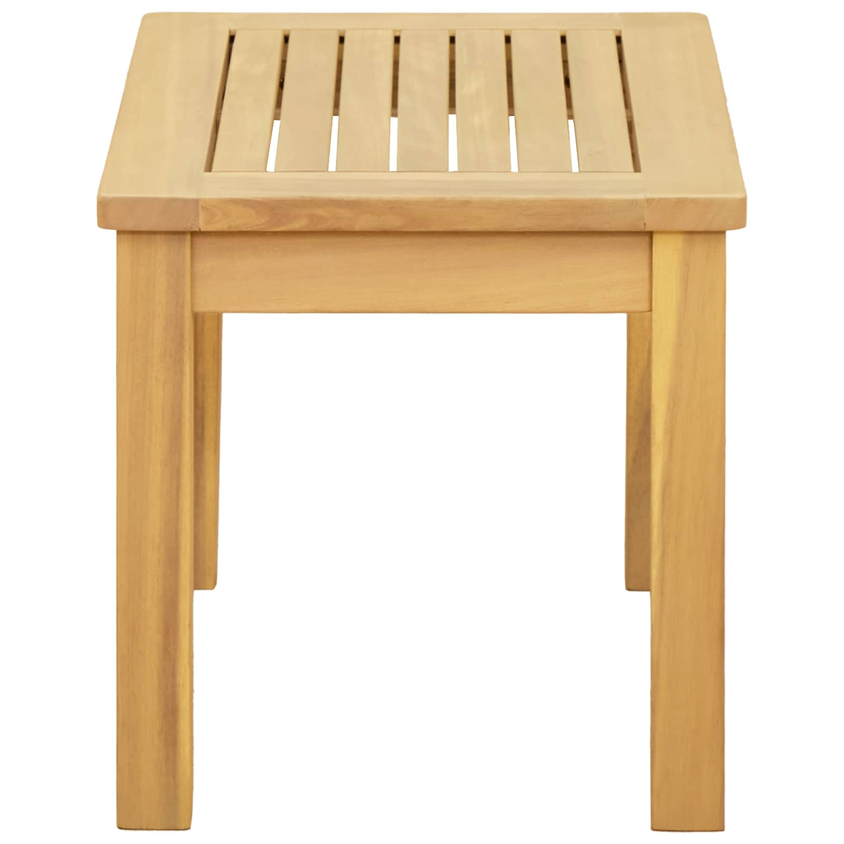 This Solid Acacia Wood Garden Coffee Table exudes a rustic charm, bringing elements of the outdoors to any garden or living room space. Designed to seamlessly blend into both indoor and outdoor settings, it offers a sturdy surface for beverages, books, and decorative items. The natural grain and hue of the Acacia wood lend warmth and character, while its robust construction ensures it stands firm. Positioned at a perfect height for casual conversations or serving refreshments, this coffee table is as functional as it is visually appealing. Solid Acacia Wood: This coffee table is meticulously crafted from solid Acacia wood, known for its striking appearance and natural weather-resistant properties. Acacia's natural grain patterns and brown hue give the table a unique character that stands out in any setting. Its durable nature ensures that it endures various weather conditions while maintaining its aesthetic appeal. Sturdy Frame and Legs: Built with a strong acacia wood frame, this table is supported by post legs designed for stability and a rustic look. The cylindrical shape of the legs offers a traditional touch, reminiscent of farmhouse design, while ensuring the table remains stable on different surfaces. Versatile Use: Perfect for diverse settings, this table can be comfortably placed in gardens, on patios, or alongside pool areas. It provides an ample surface for holding drinks, books, or decorative items, making it suitable for both lively gatherings and quiet relaxation. Natural Finish: The table boasts a natural finish that highlights the wood's natural lines and textures, preserving its authentic rustic charm. This finish not only enhances the table's appearance but also protects against daily wear, ensuring lasting enjoyment. Simple Maintenance: Caring for this table is straightforward, requiring only a wipe with a damp cloth to keep it looking pristine. This easy maintenance regime ensures the table remains a centerpiece, as appealing as the day it was brought home.