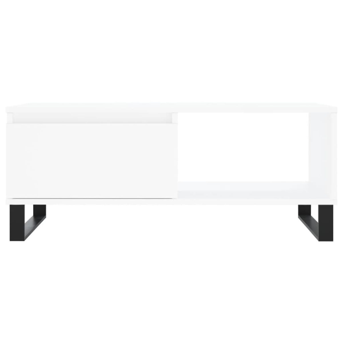 Add a touch of elegance to your living room with this stylish coffee table. Durable material: The engineered wood is of exceptional quality with smooth surface and also features strength, stability and resistance to moisture. Made of engineered wood, the side table is easy to clean with a damp cloth.Ample storage space: This sofa table has a drawer and a compartment, offering ample storage space to keep your essentials well organised and within reach.Sturdy tabletop: The sturdy tabletop is perfect for placing your drinks, food and other decorative items.Metal legs: The metal legs add a modern and calm style to your interior while ensuring stability.