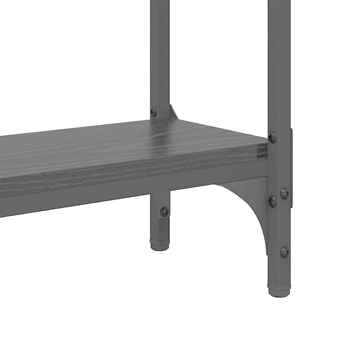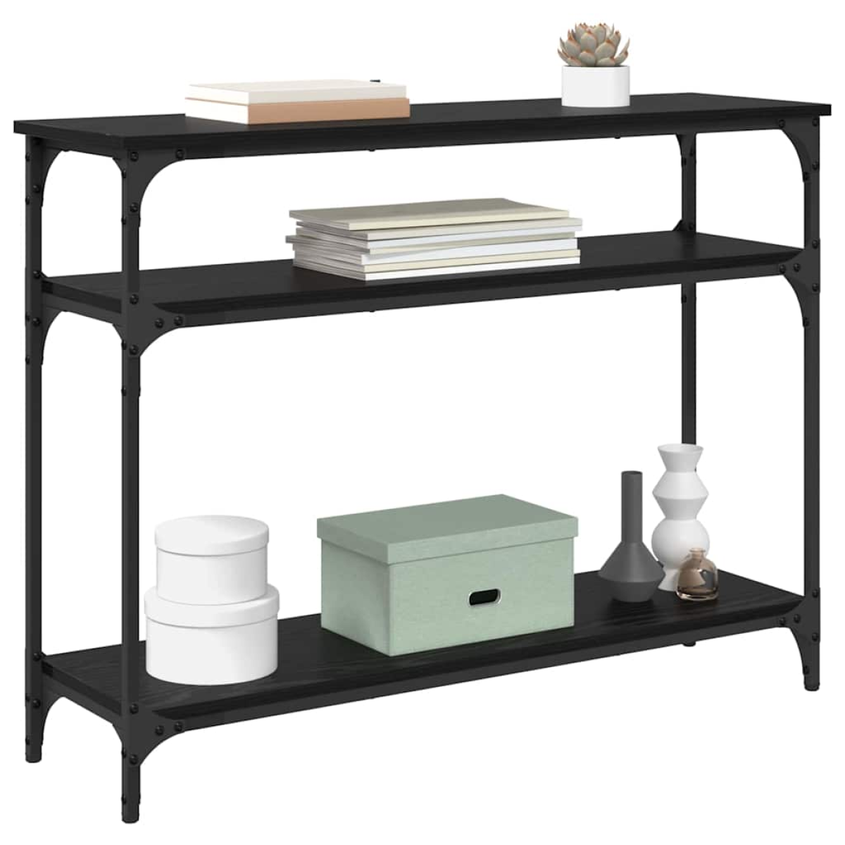 This Industrial Slim Console Table is a perfect blend of modern design and practical functionality, offering an appealing solution to enhance any living space. Designed with an urban loft inspiration, it incorporates raw materials to create a sleek, chic addition suitable for various home aesthetics. With its narrow build, it seamlessly fits against walls, serving both display purposes and storage needs, allowing you to showcase your favorite items or keep essentials within reach. Materials: Skillfully crafted from engineered wood, this console table offers durability and a smooth texture, resistant to everyday wear and tear. Its matte finish adds an elegant, subtle sheen, contributing to a sophisticated ambiance in your living room. This carefully selected material ensures a long-lasting piece that complements various interior styles and colors. Included Components: Equipped with versatile board shelves, the console table provides ample space for organizing and displaying items like books, decorative pieces, or small electronics. Its powder-coated metal frame gives both aesthetic appeal and robust support, ensuring your items are held securely. Features /Function /Design: This table combines industrial flair with functional design, making it perfect for homes seeking a modern twist. Designed for indoor use, it pairs well with contemporary or minimalist decor. Its square legs add geometric interest while supporting the structure with unwavering stability. Recommended Uses: Ideal for living rooms, entrance ways, or hallways, this table serves not only as a focal piece but also a functional element for storing and showcasing essentials. Its sleek profile makes it suitable for both small and large spaces, adapting easily to different contexts. Care &Maintenance: To maintain its pristine condition, simply wipe with a damp cloth, avoiding harsh chemicals and abrasives. This easy care routine ensures the table remains an exquisite part of your decor for years to come, highlighting its practicality and elegance.