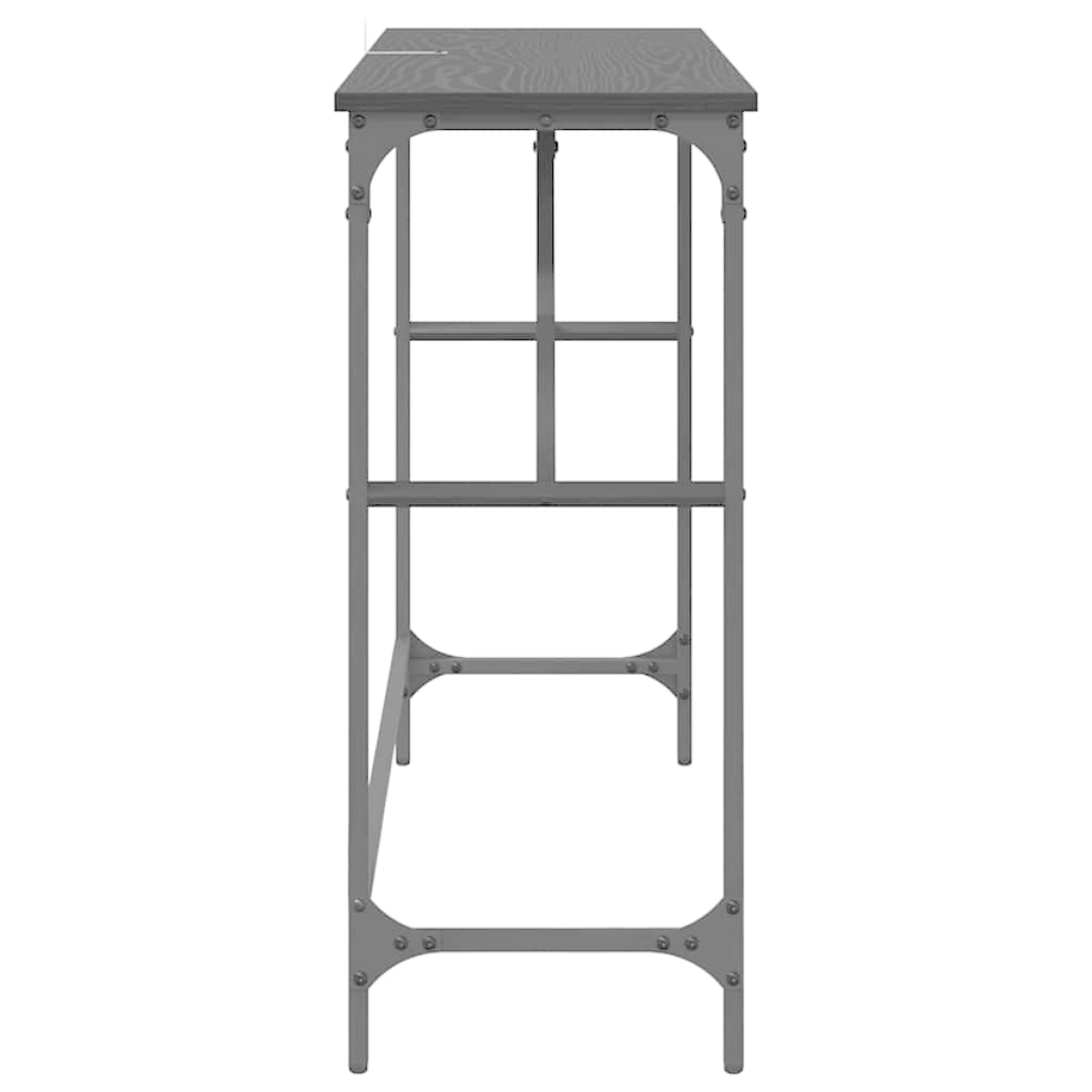 This industrial-style console table embodies the rugged charm of urban loft living while maintaining a sleek, understated elegance. Perfect for a living room or hallway, it blends with various decorative styles and provides an ideal balance of storage and display. Its surface, crafted from engineered wood, offers a smooth finish that is both stain resistant and pleasing to the eye, allowing it to serve as a functional centerpiece or supportive accent piece. The table integrates easily into a home's setup, offering flexibility and style through its purposeful design and robust build. Engineered Wood Surface: The console table boasts an engineered wood top, renowned for its durability and stain-resistant features. This material not only supports substantial weight without bowing but maintains its aesthetic across varied usage scenarios. Perfect for displaying books, décor, or key household items, the finish stands resilient against the wear and tear of everyday life. Steel Frame and Legs: Standing on a strong steel frame with post legs, this table provides firm support. The durability of metal ensures the table stands the test of time, creating a reliable foundation for all display needs. Ideal for those prioritizing stability and strength in their furniture. Adjustable Levelers: With manual levelers on each leg, the table accommodates uneven flooring and guarantees stability. This feature ensures the aesthetic integrity and display utility of the table in diverse home settings, including living rooms or entryways. Industrial Design Style: Inspired by urban lofts, the table’s industrial style mixes raw elegance with practicality. Its design, suitable for warehouses or modern settings alike, emphasizes both form and functionality, appealing to a broad aesthetic palate. Simple Maintenance: Caring for this console table is straightforward, requiring nothing more than a quick wipe with a damp cloth. This low-maintenance requirement makes it perfect for busy households, ensuring it remains a sophisticated focal point without creating added work for its owner.